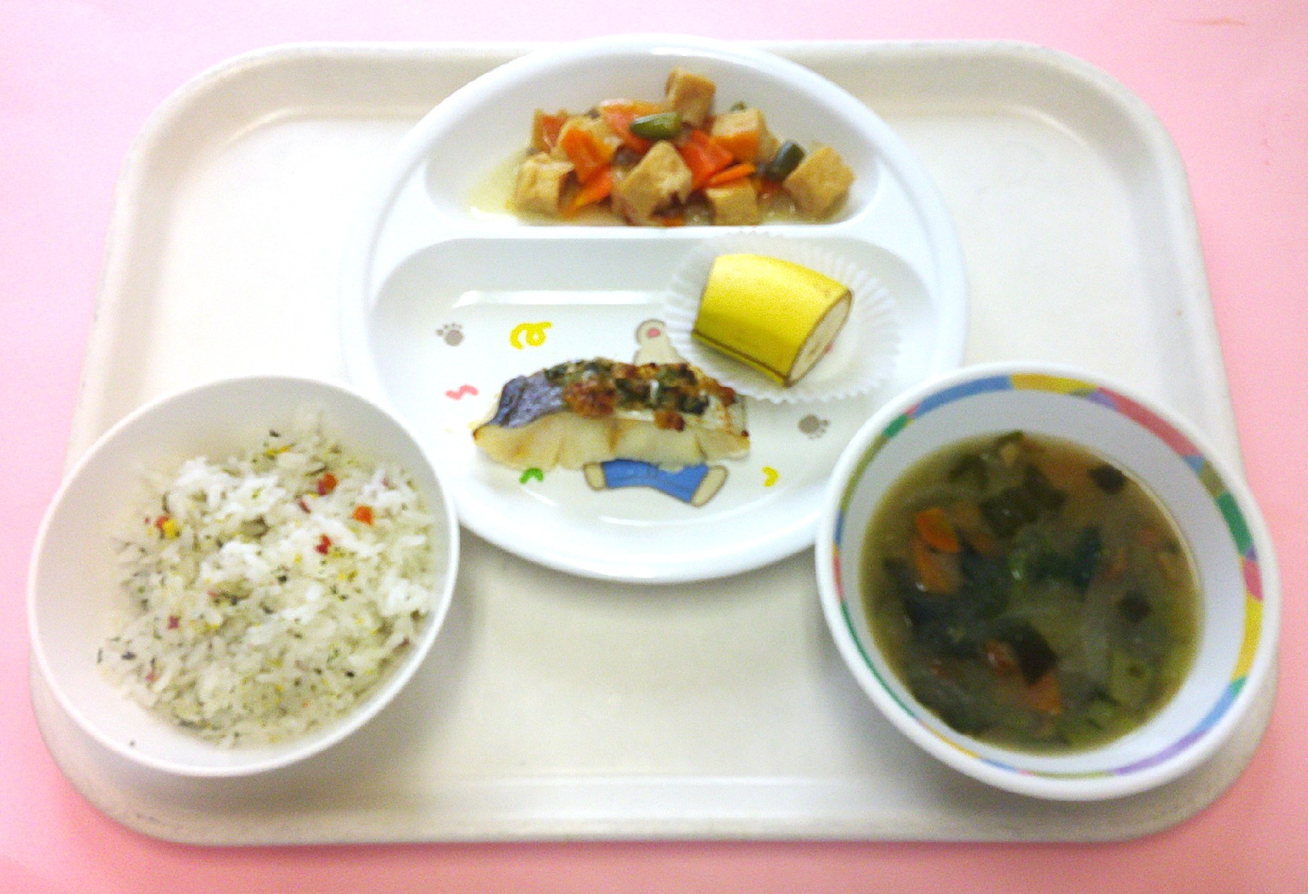 ・ご飯・たらのゆずみそ焼き・けんちん汁・キャベツの塩だれ炒め