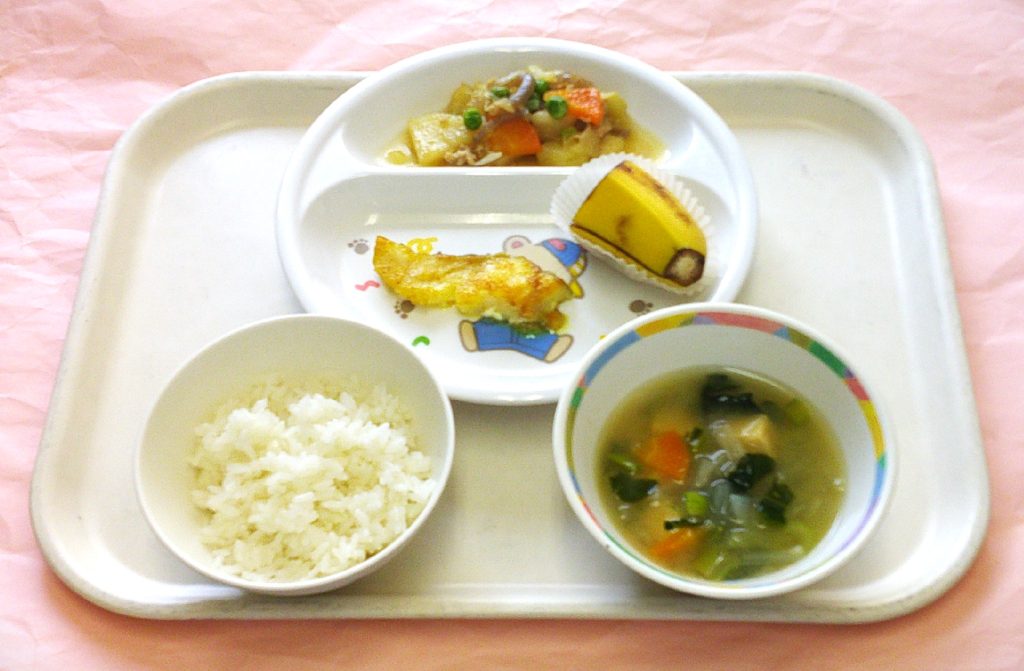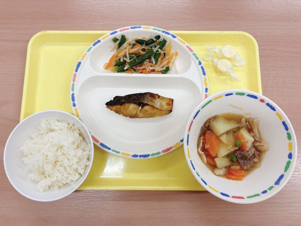 ・ご飯・あじのカレー風味焼き・肉じゃが・いんげんのピーナツ和え・チーズ