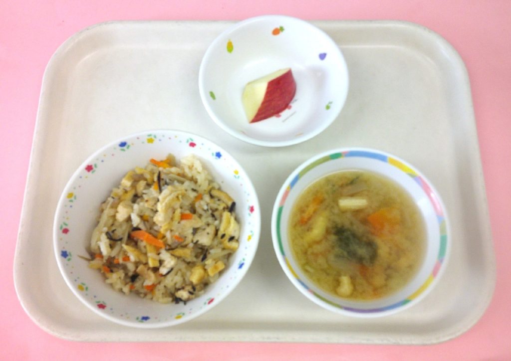 2026年01月19日 本日の給食 ・ご飯・あらびきウインナー・チキンカレー・らっきょうサラダ・バナナスティックケーキ 今日の鳥取県産食材:米、らっきょう4園リクエストメニュー:今日は4園さんリクエストのカレーとウインナーです🍛