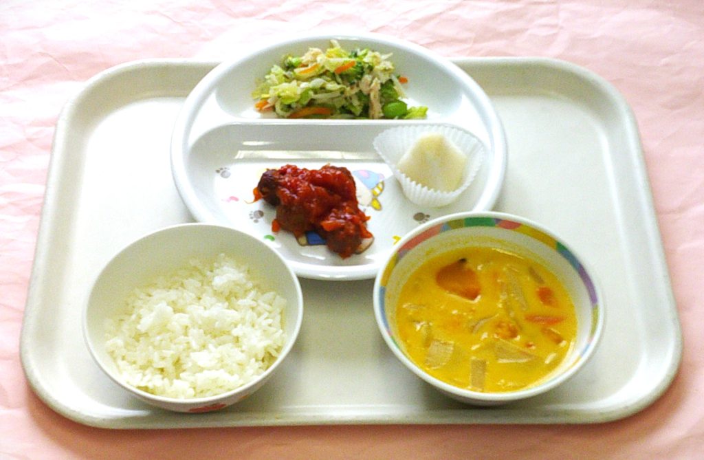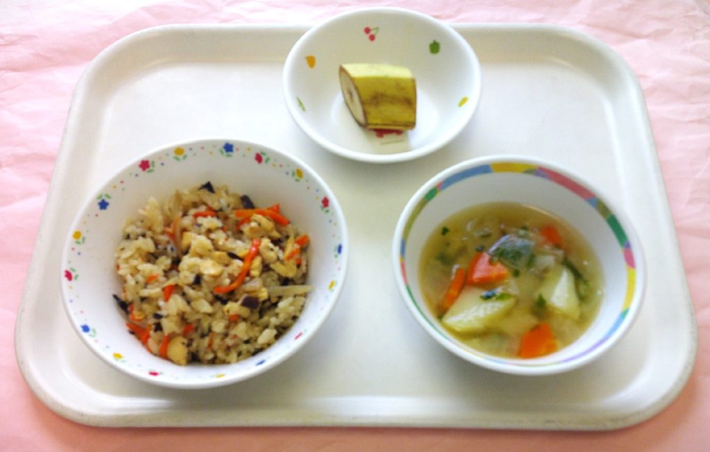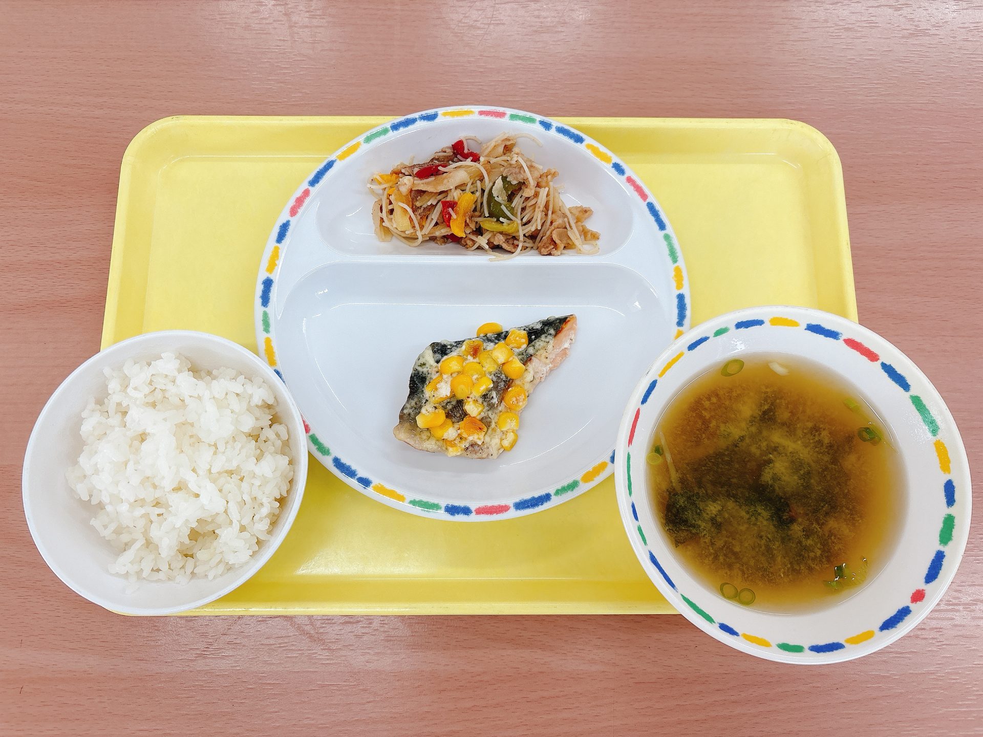 ・ご飯・ますのマヨコーン焼き・なめこのみそ汁・ビーフンソテー