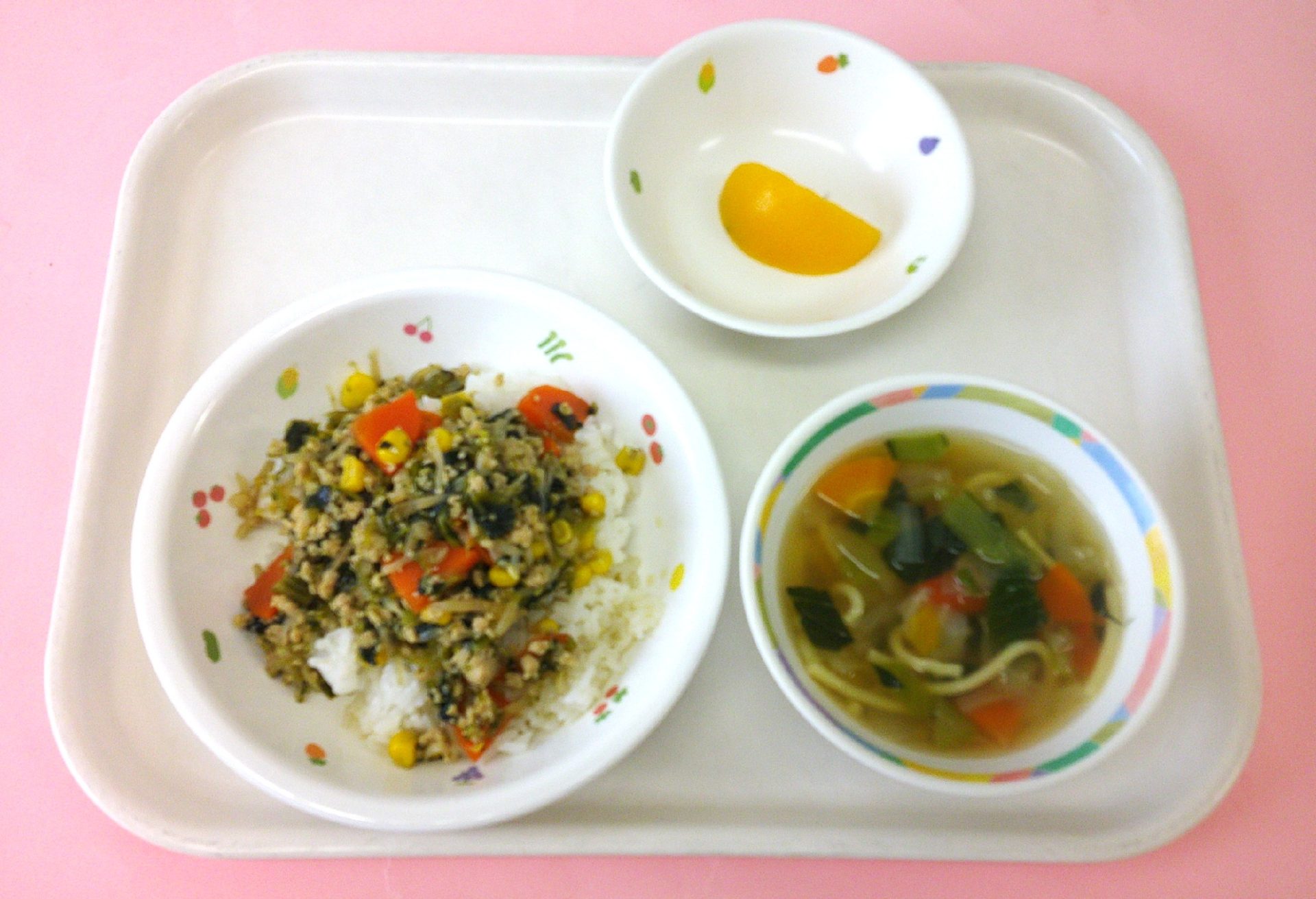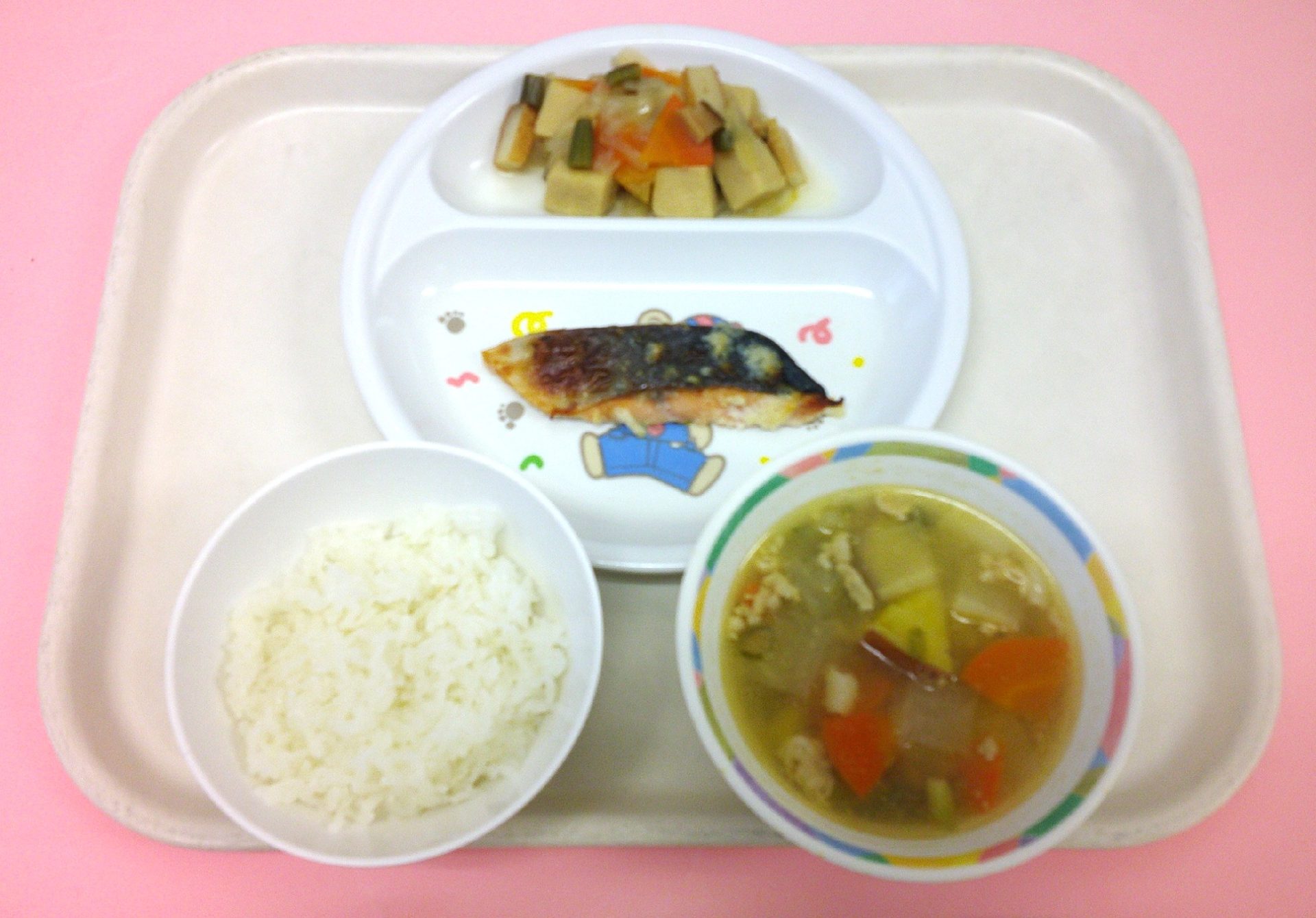 2026年02月06日 本日の給食 ・ご飯・白身フライ・小松菜のみそ汁・高野豆腐の含め煮・こんぶふりかけ 今日の鳥取県産食材:米、小松菜、にんじんのりの日、抹茶の日メニュー:今日はのりと抹茶を使った、こんぶふりかけがついています🍵