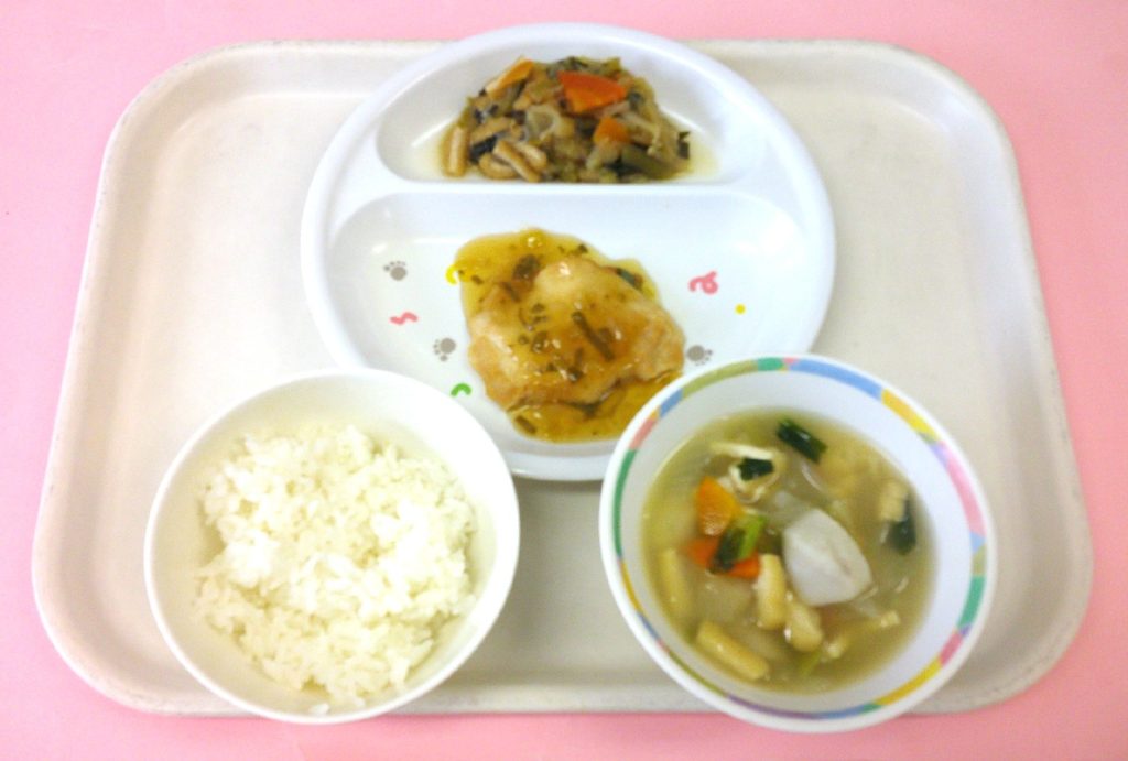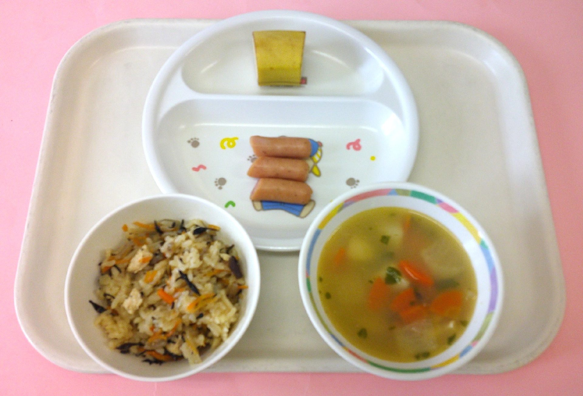 ・ちらし寿司・春巻き・おふのすまし汁・五目煮・きなこボーロ