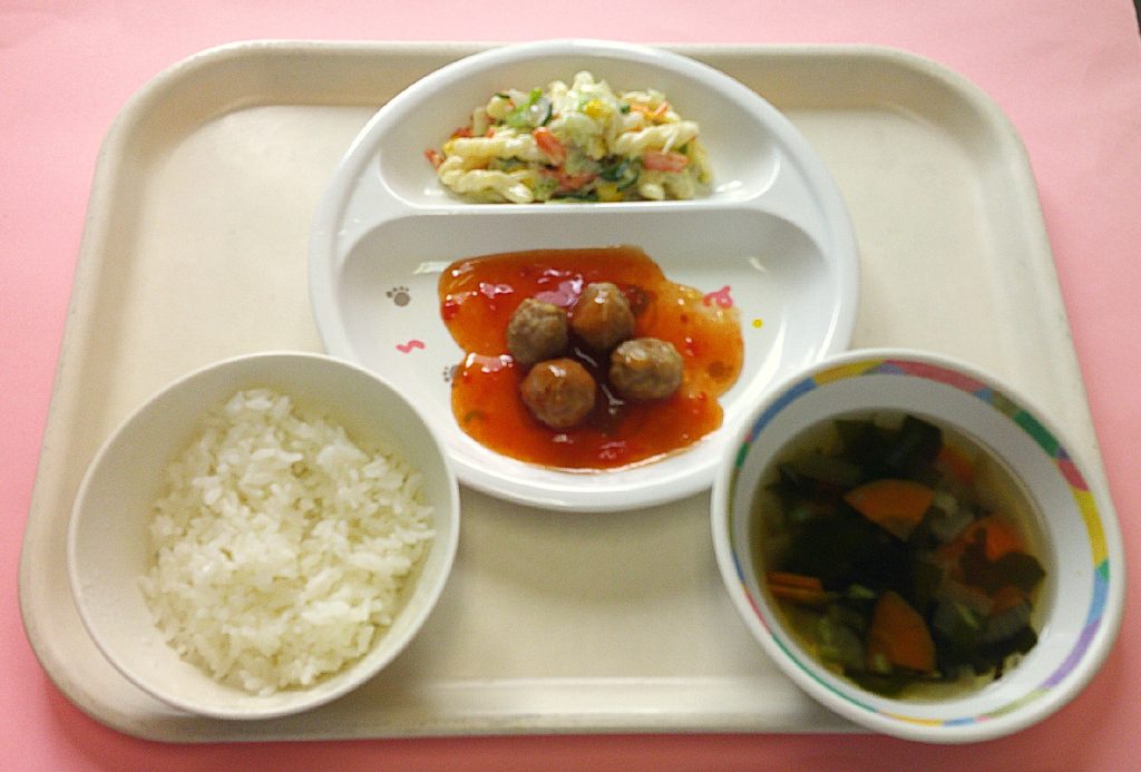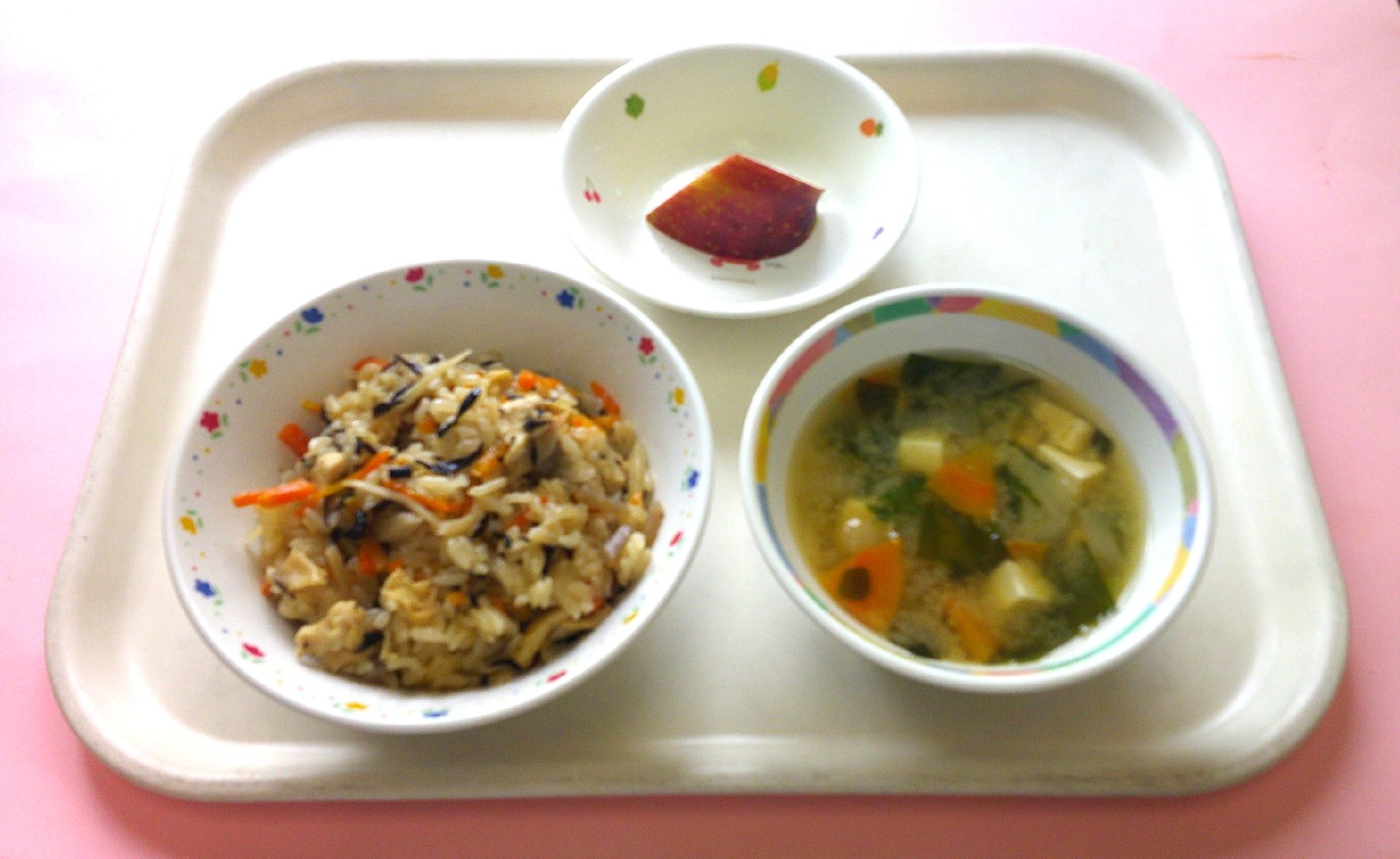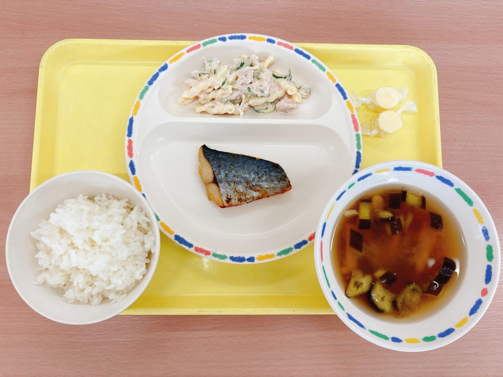 ・ご飯・さわらのしょうが焼き・なすのみそ汁・マカロニサラダ・チーズ