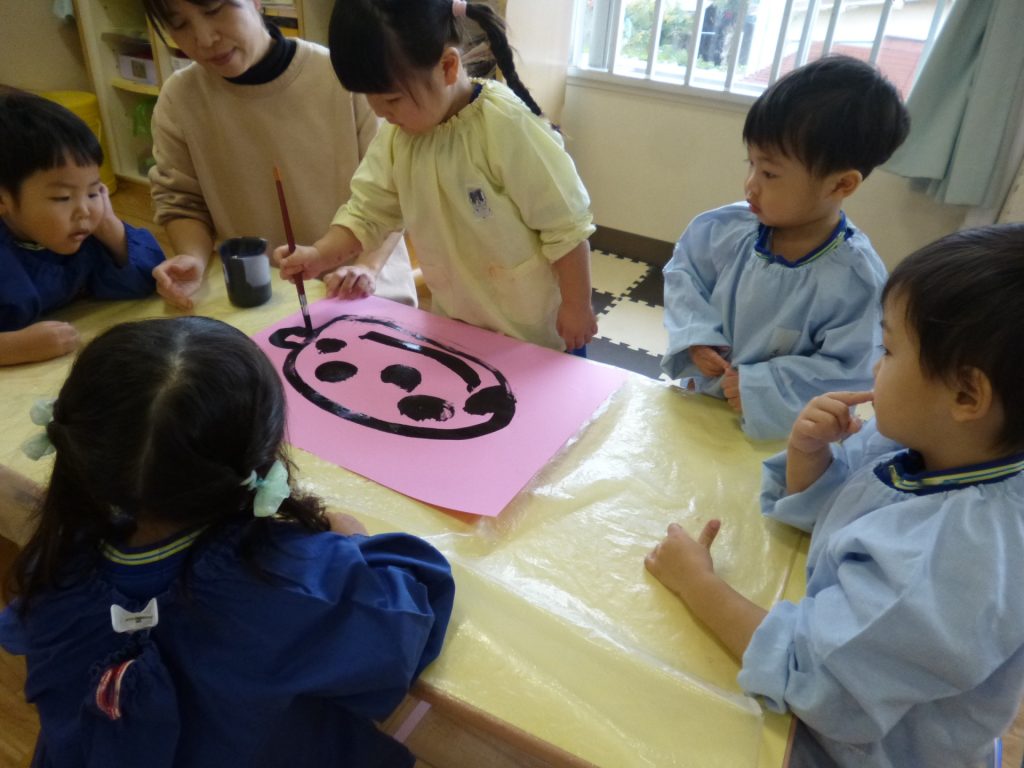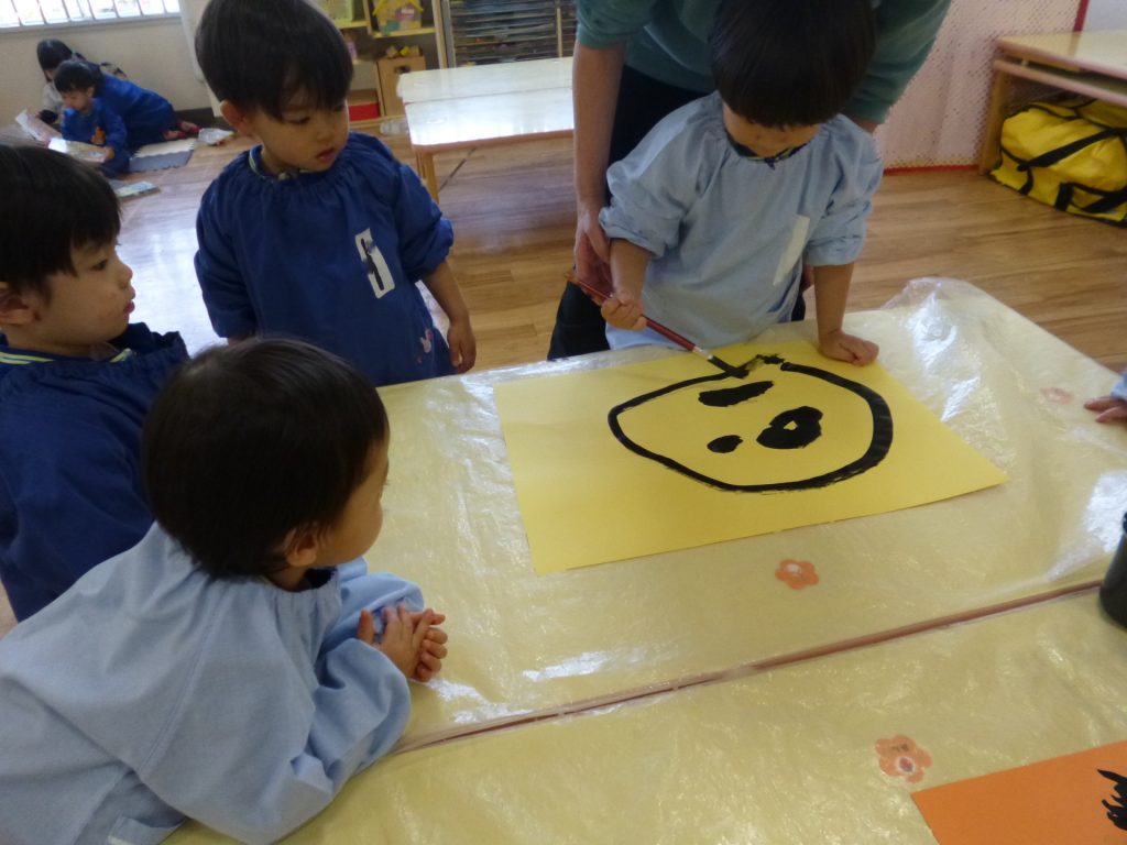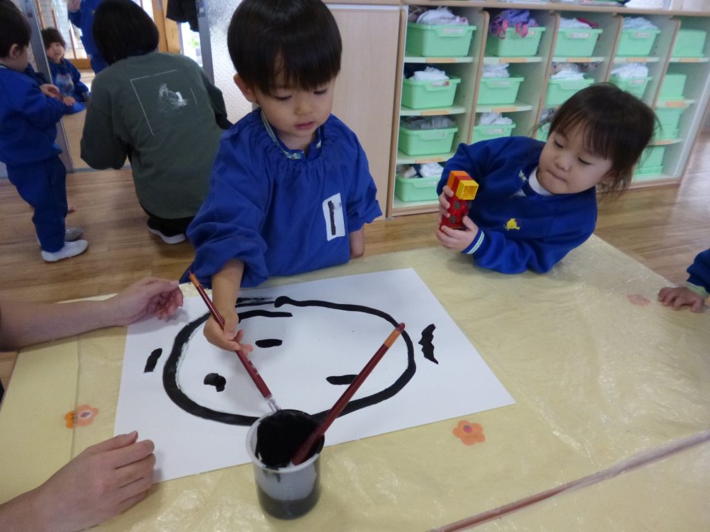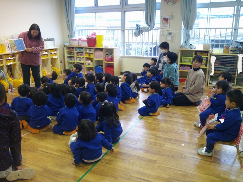 1月生まれの誕生日会が行われました❄最初に「雪だるまのチャチャチャ」を歌いました⛄とても元気に楽しそうに歌っている姿も見られましたよ😊1月生まれのお友達は3人でした!お名前が呼ばれたらすぐに「ここ座りたいな」と好きな席に座って大満足なお友達です😊お誕生月のお友達の紹介では、少し恥ずかしそうになりながらも名前と「3さい!」と指を出して教えてくれましたよ😊園長先生からのお祝いの言葉では、絵本のプレゼント🎁「誕生日」の歌を歌い、お楽しみのコーナーではお正月の遊びである「福笑い」と「こま回し」でした!「ふくわらい」では、本来は目を隠してパーツをつけますが、子ども達には少し難しいので、今回は目は隠さないで実際に1月生まれのお友達が挑戦しました!自分でパーツを付けたり職員と一緒に付けたりしながら素晴らしい「福笑い」が完成しました!コマ回しは職員が挑戦しました!回るコマに子どもたちは大喜びでした!寒さに負けずにいっぱい遊んでいっぱい食べて大きくなってくださいね😊お誕生日おめでとうございます🎂