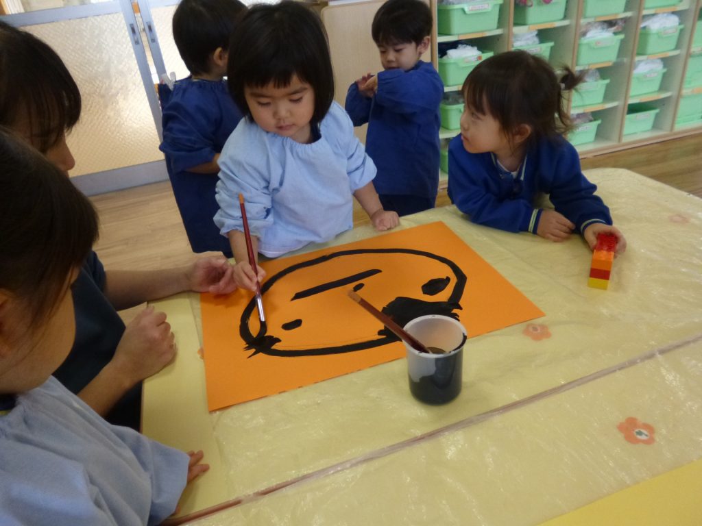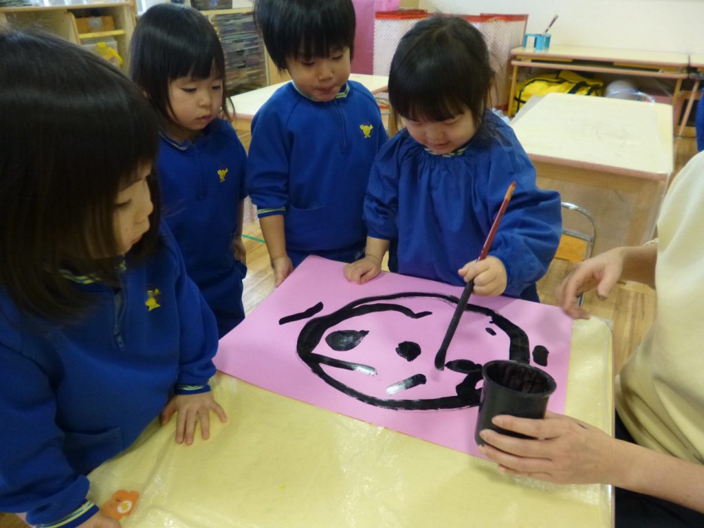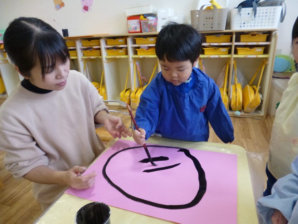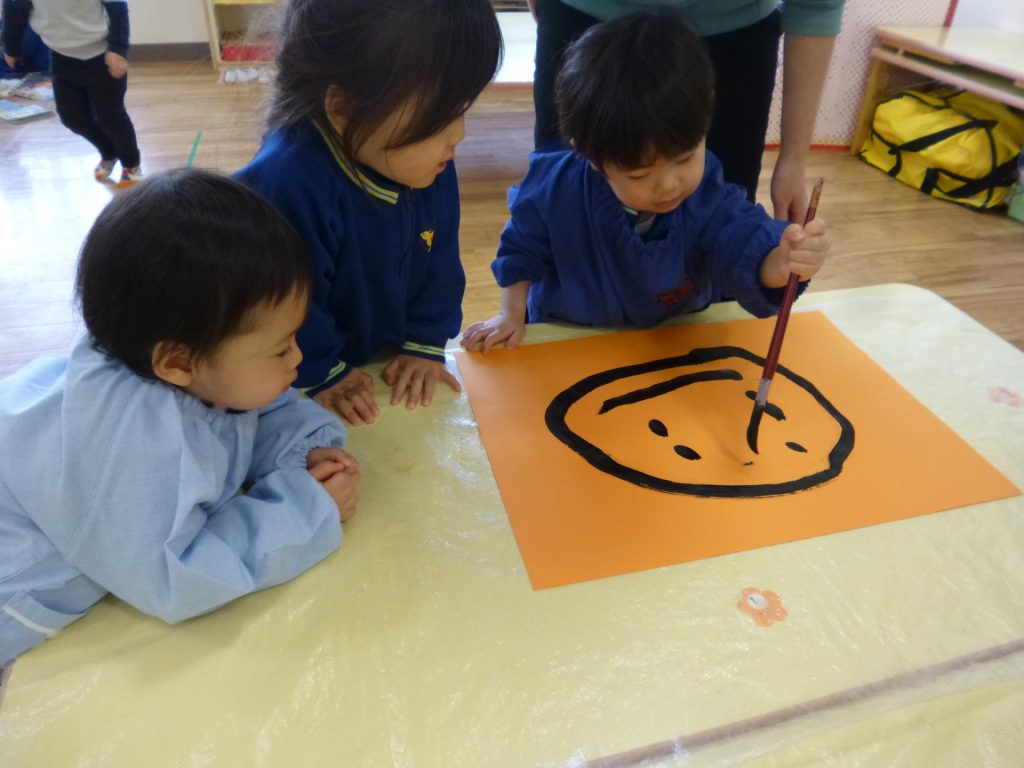 1月生まれの誕生日会が行われました❄最初に「雪だるまのチャチャチャ」を歌いました⛄とても元気に楽しそうに歌っている姿も見られましたよ😊1月生まれのお友達は3人でした!お名前が呼ばれたらすぐに「ここ座りたいな」と好きな席に座って大満足なお友達です😊お誕生月のお友達の紹介では、少し恥ずかしそうになりながらも名前と「3さい!」と指を出して教えてくれましたよ😊園長先生からのお祝いの言葉では、絵本のプレゼント🎁「誕生日」の歌を歌い、お楽しみのコーナーではお正月の遊びである「福笑い」と「こま回し」でした!「ふくわらい」では、本来は目を隠してパーツをつけますが、子ども達には少し難しいので、今回は目は隠さないで実際に1月生まれのお友達が挑戦しました!自分でパーツを付けたり職員と一緒に付けたりしながら素晴らしい「福笑い」が完成しました!コマ回しは職員が挑戦しました!回るコマに子どもたちは大喜びでした!寒さに負けずにいっぱい遊んでいっぱい食べて大きくなってくださいね😊お誕生日おめでとうございます🎂