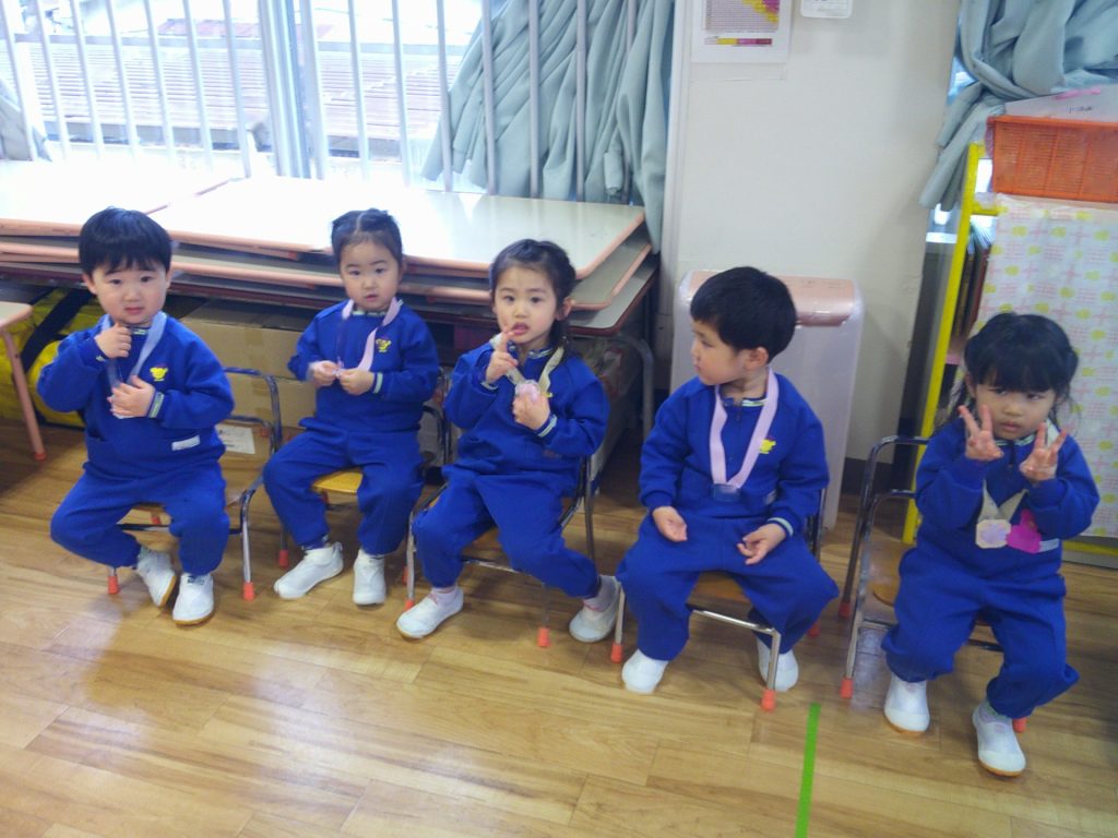 4月からいよいよ年少組です。これからも様々な経験を通して、子ども達がさらにのびのびと成長していくことを願っています。1年間ありがとうございました。