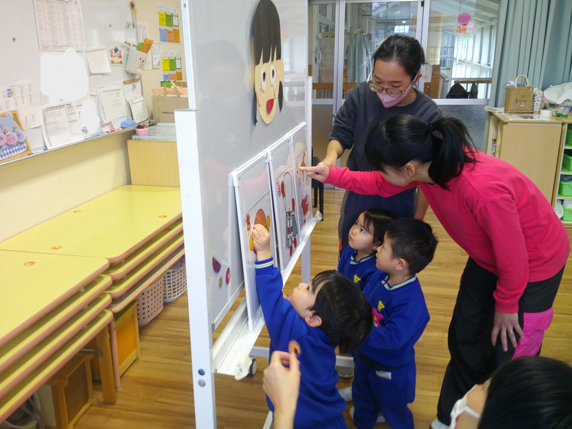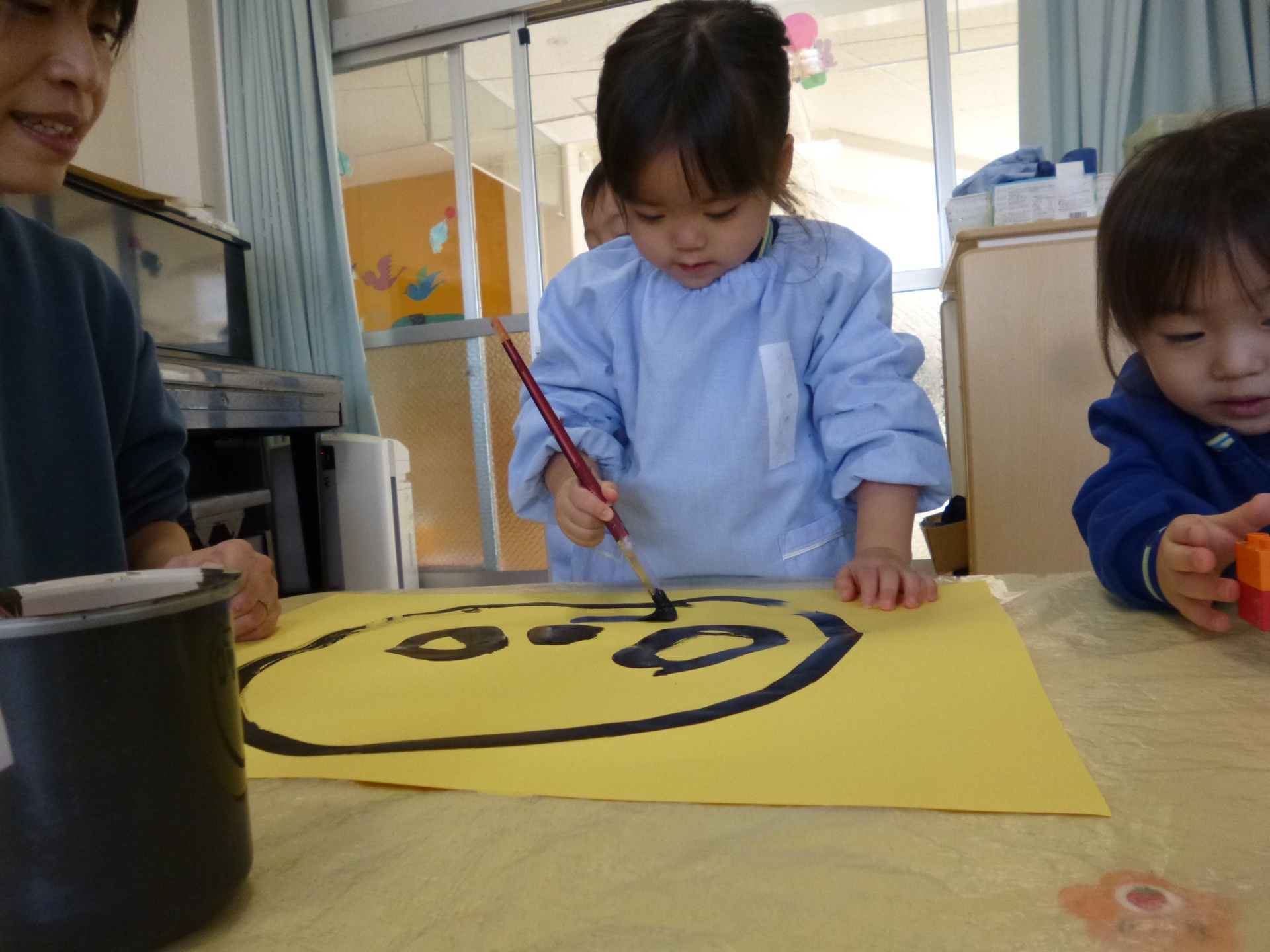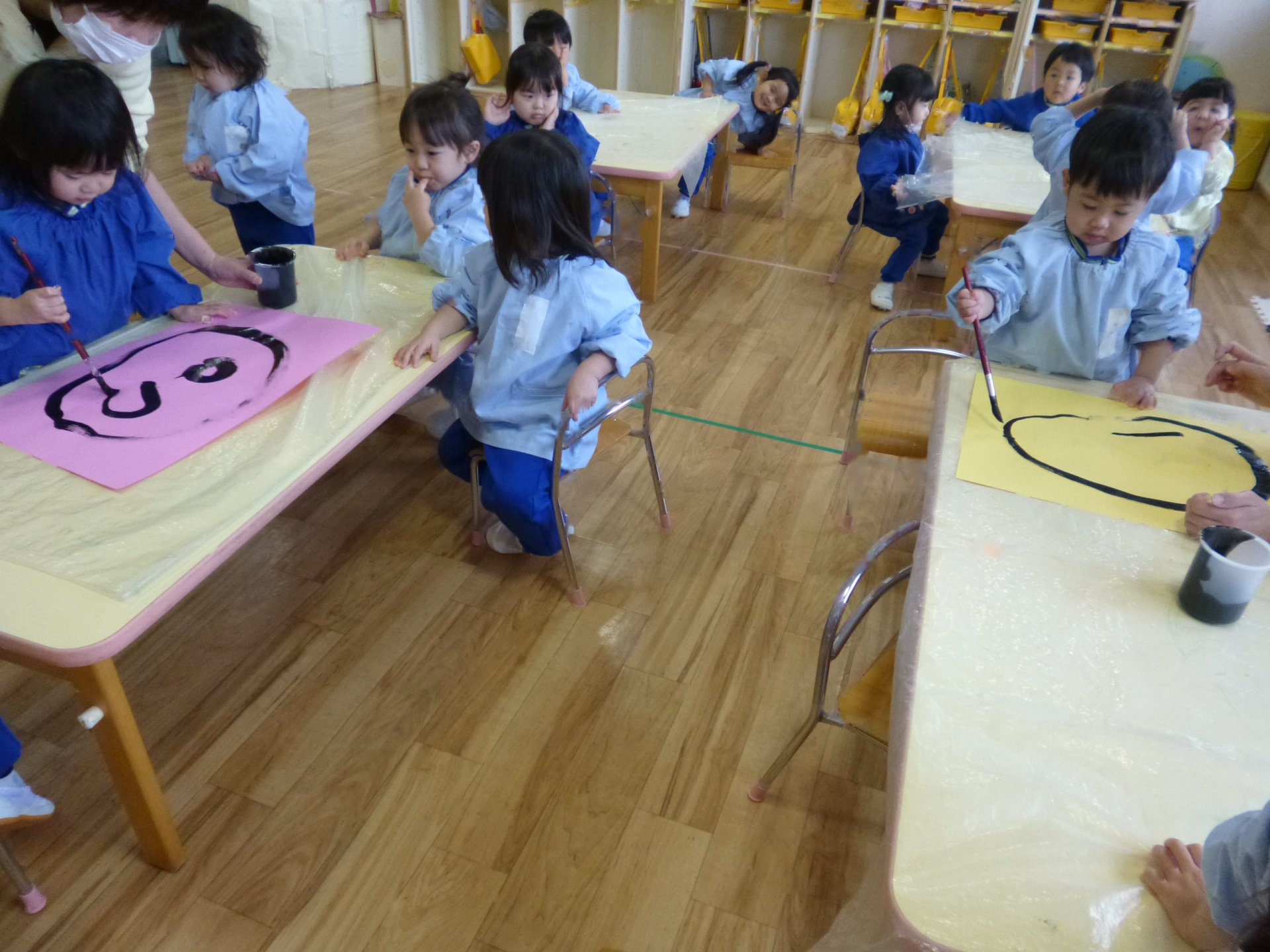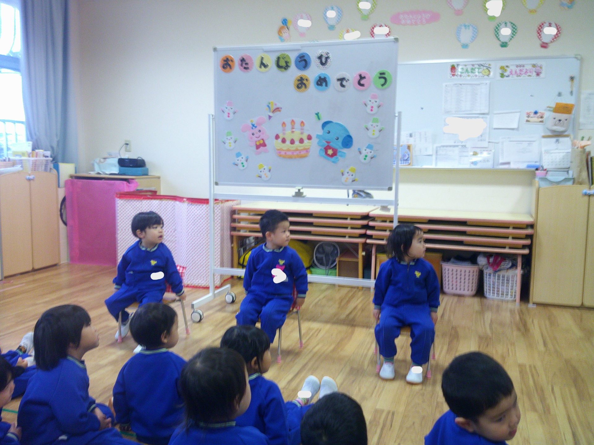 1月生まれの誕生日会が行われました❄最初に「雪だるまのチャチャチャ」を歌いました⛄とても元気に楽しそうに歌っている姿も見られましたよ😊1月生まれのお友達は3人でした!お名前が呼ばれたらすぐに「ここ座りたいな」と好きな席に座って大満足なお友達です😊お誕生月のお友達の紹介では、少し恥ずかしそうになりながらも名前と「3さい!」と指を出して教えてくれましたよ😊園長先生からのお祝いの言葉では、絵本のプレゼント🎁「誕生日」の歌を歌い、お楽しみのコーナーではお正月の遊びである「福笑い」と「こま回し」でした!「ふくわらい」では、本来は目を隠してパーツをつけますが、子ども達には少し難しいので、今回は目は隠さないで実際に1月生まれのお友達が挑戦しました!自分でパーツを付けたり職員と一緒に付けたりしながら素晴らしい「福笑い」が完成しました!コマ回しは職員が挑戦しました!回るコマに子どもたちは大喜びでした!寒さに負けずにいっぱい遊んでいっぱい食べて大きくなってくださいね😊お誕生日おめでとうございます🎂