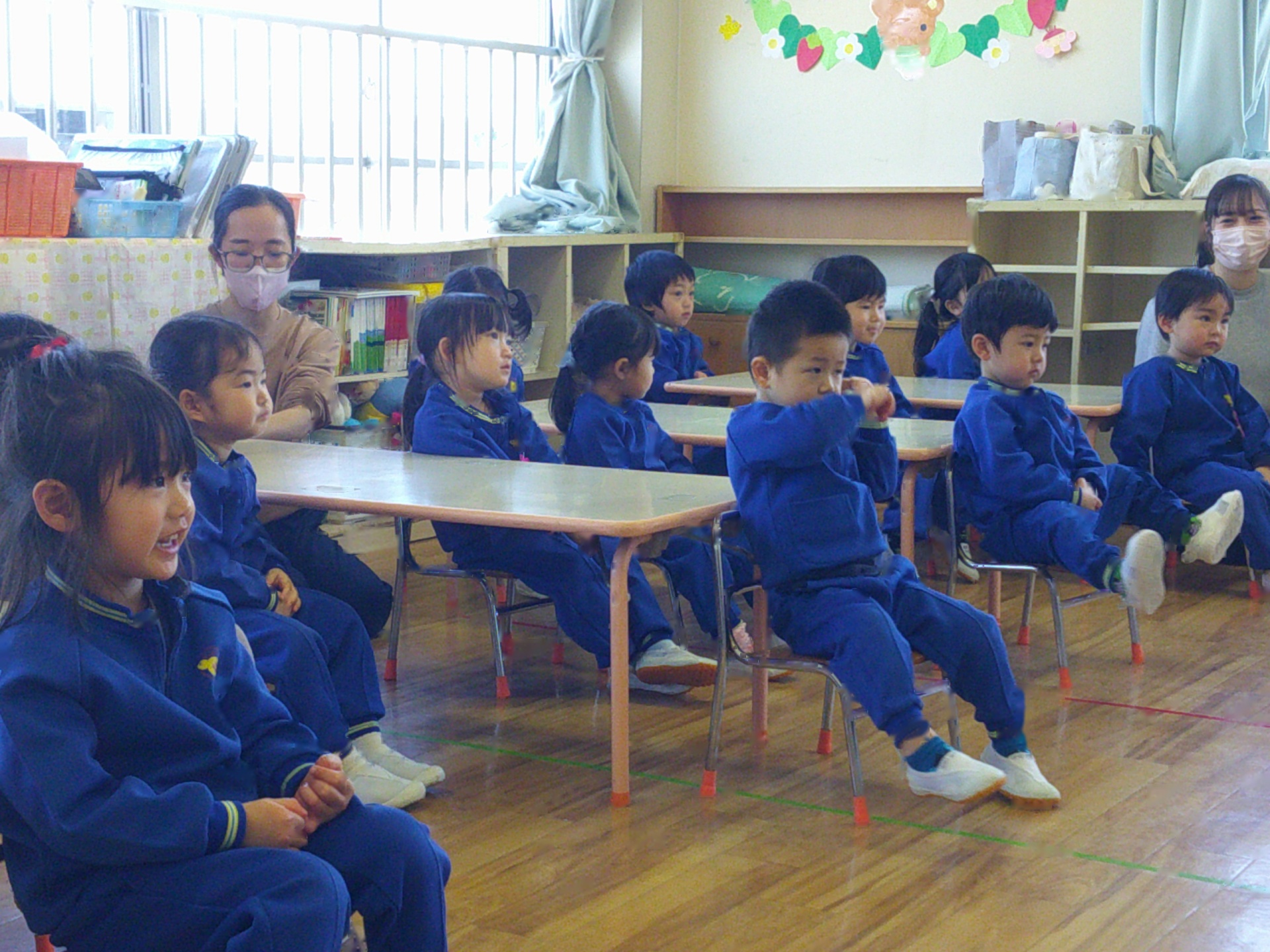 4月からいよいよ年少組です。これからも様々な経験を通して、子ども達がさらにのびのびと成長していくことを願っています。1年間ありがとうございました。