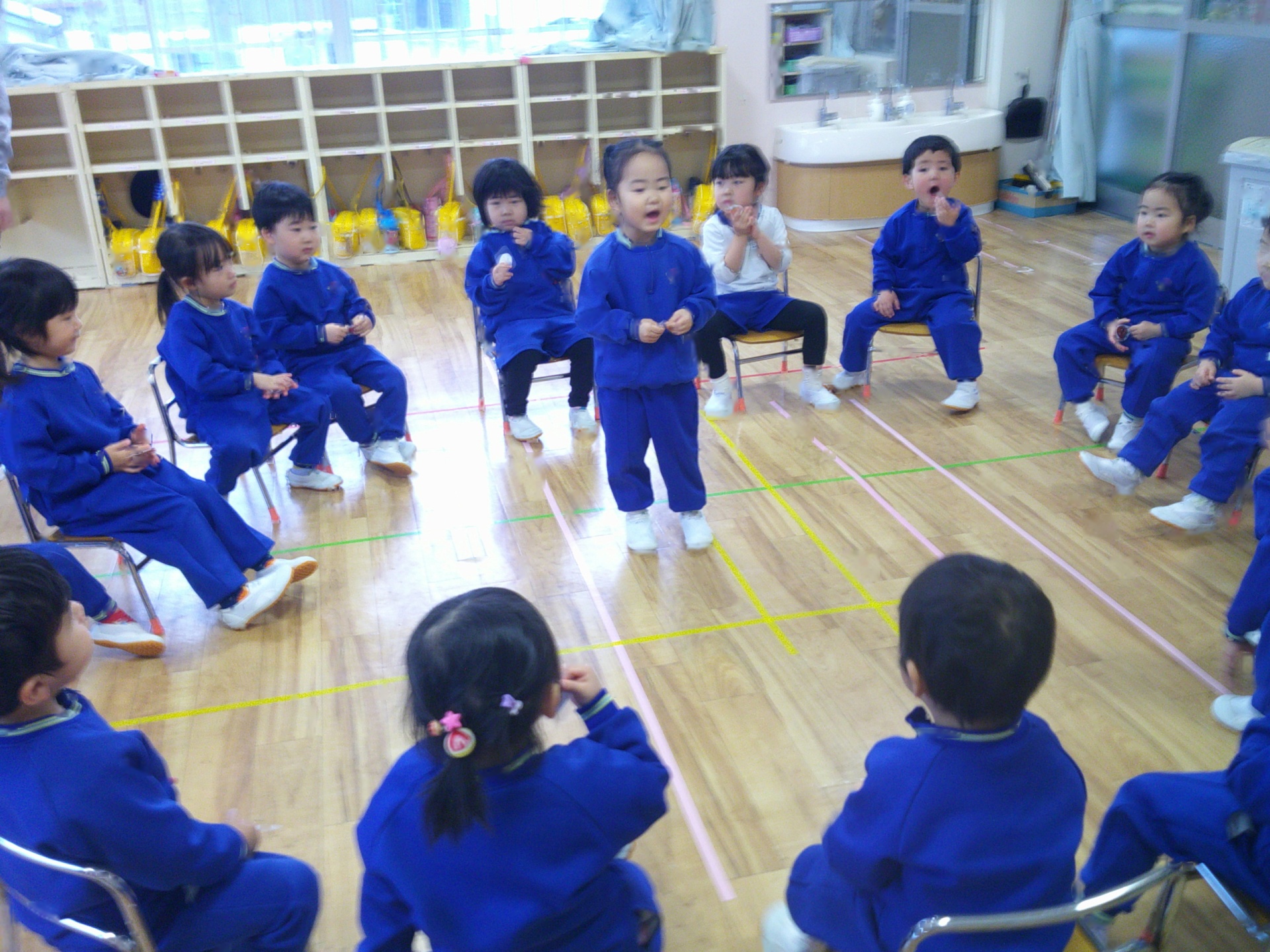 最終日はみんなで遊びたい!と子どもたちから声が上がったので、フルーツバスケットや貨物列車、椅子取りゲームなど、みんなで遊べる活動を楽しみました。真ん中に立って発言したり、友達を応援したり、じゃんけんをして列車になったりと、友達との交流を楽しむ姿が見られました(*^^*)