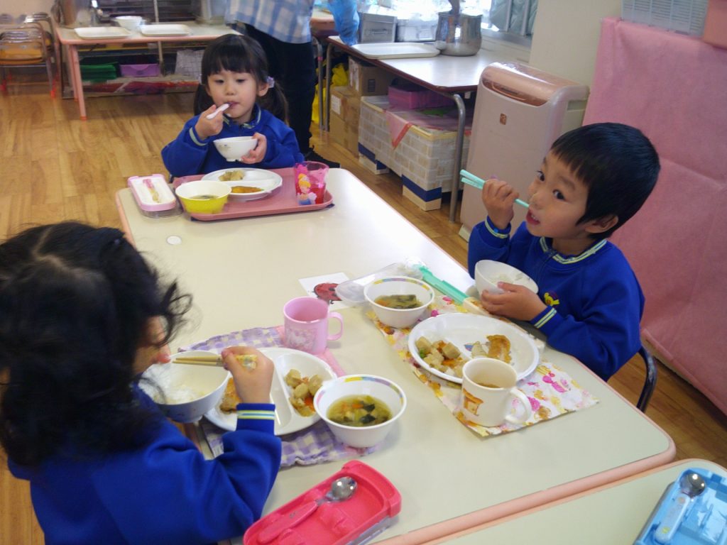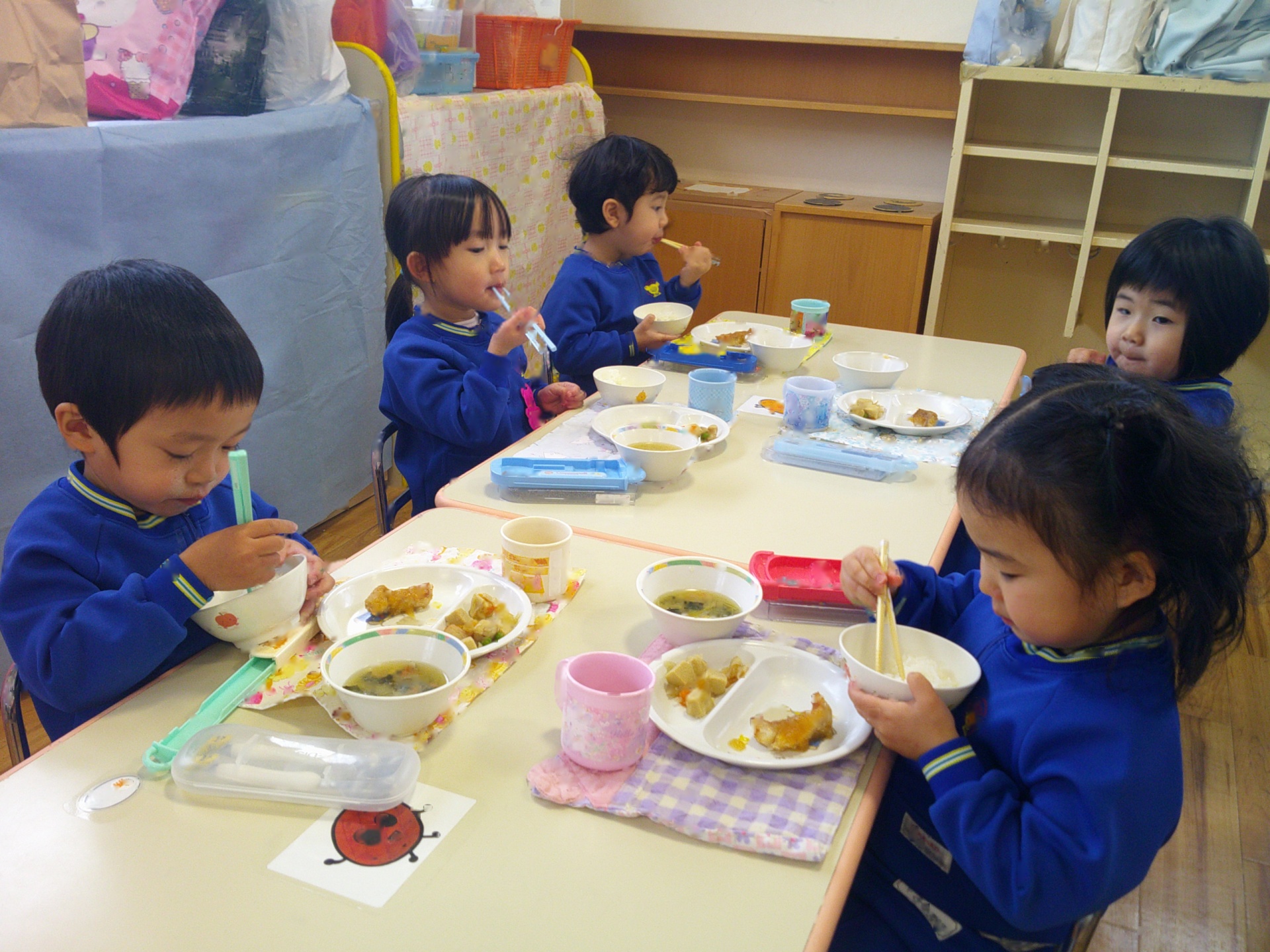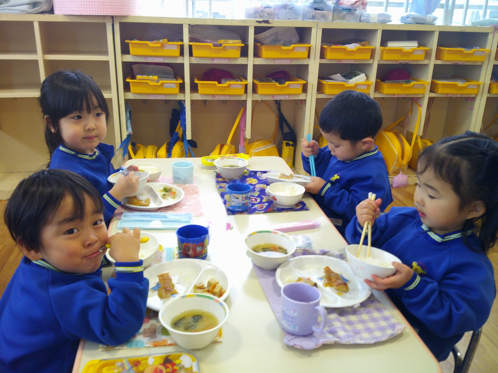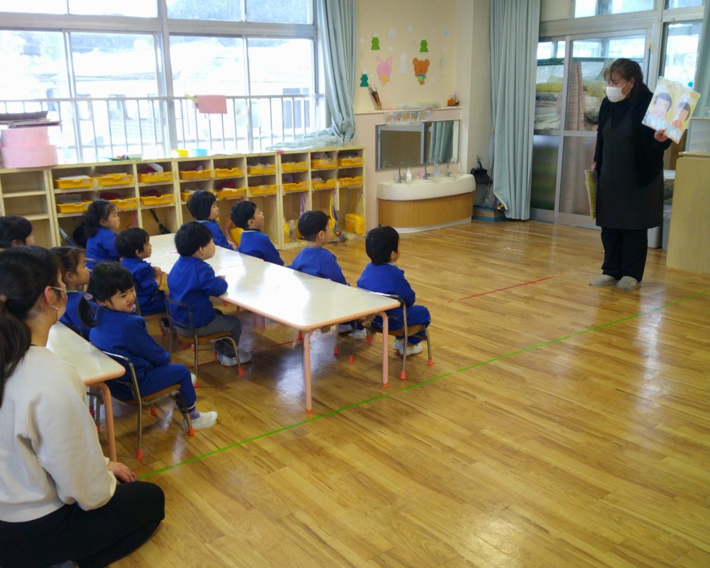 2026年01月26日 ~食育指導~ 食育指導があり、栄養士さんから食事のマナーについて話を聞きました。食事の挨拶や正しい姿勢、食器の持ち方について教えていただきました。「ご飯を食べる前にする挨拶は何でしょう?」と聞かれると、「いただきます」と元気いっぱい答える子どもたち。給食の時間も元気いっぱいの「いただきます」が聞かれましたよ。お家でもお話を聞いてみてください(*^^*)