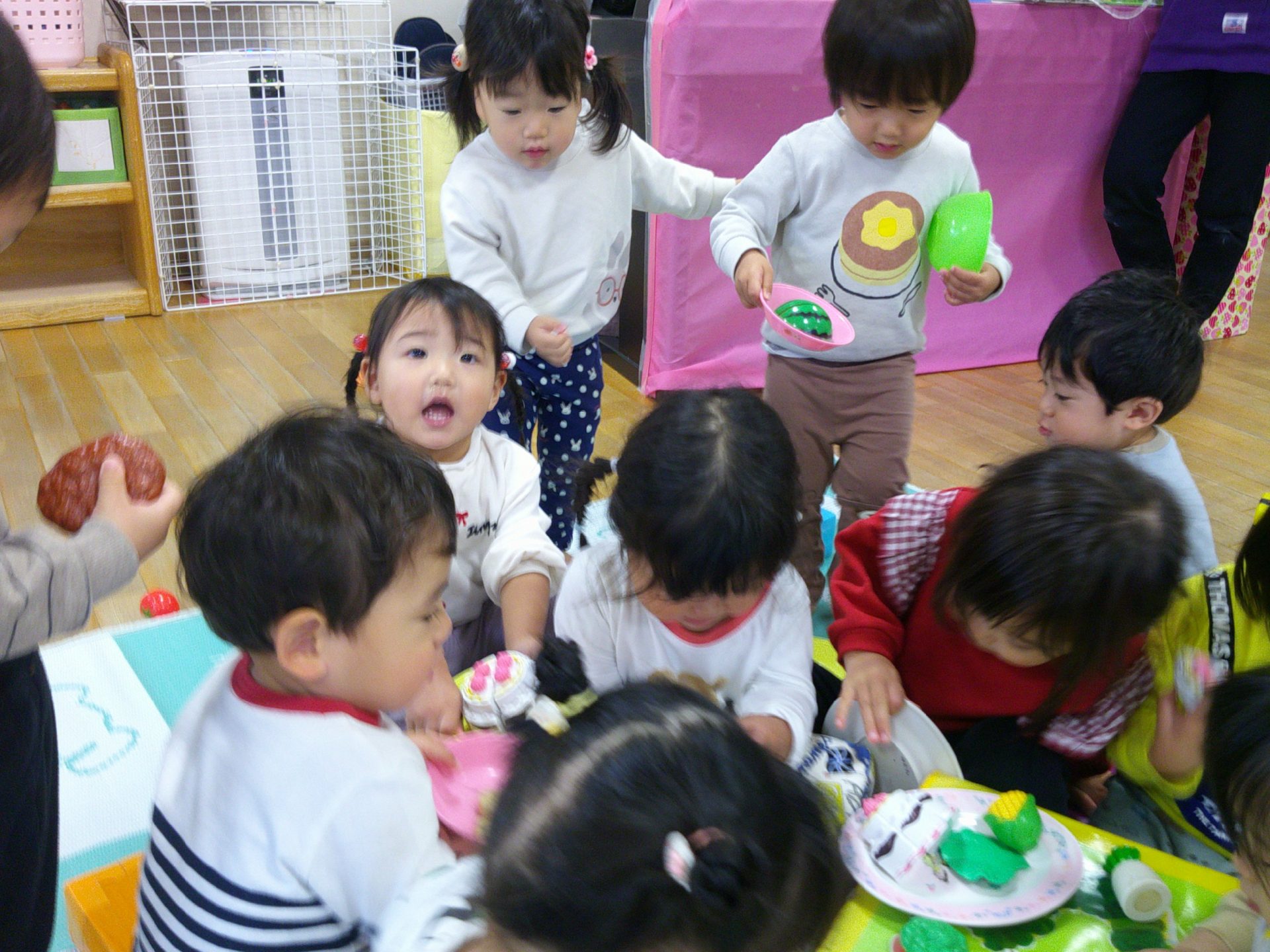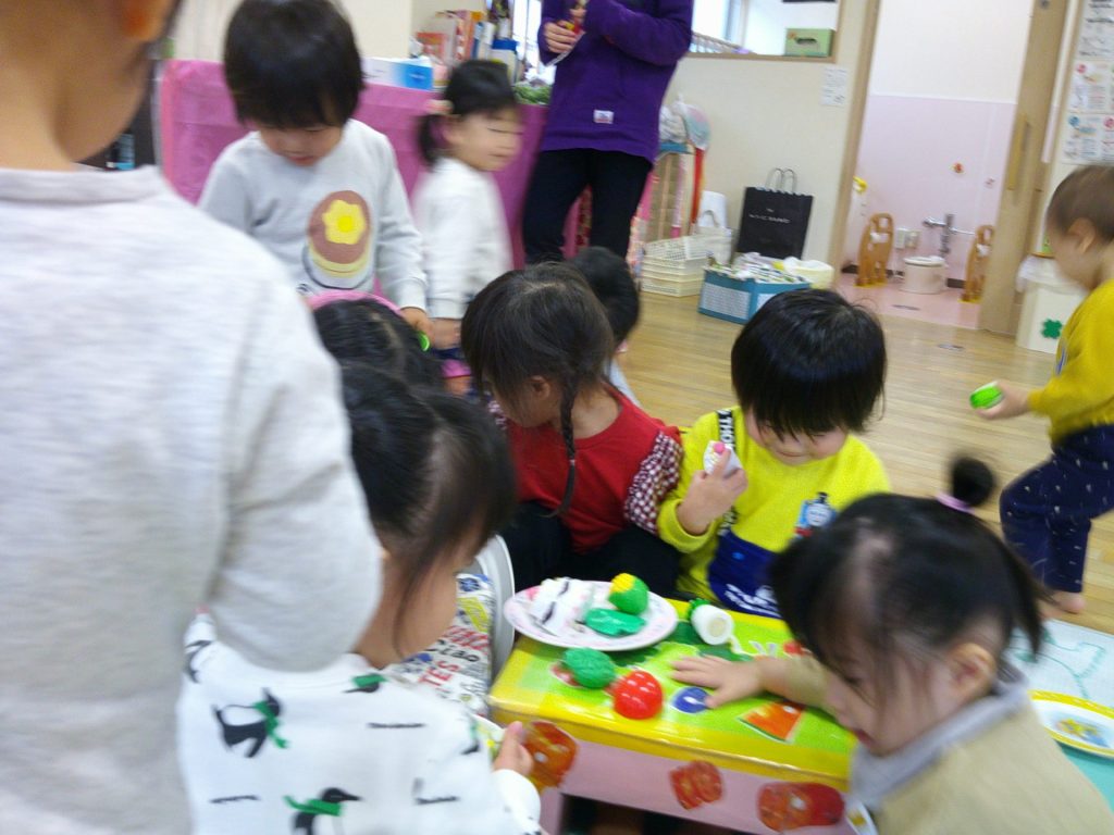 ままごと遊び、盛り上がっていました。大家族のように、とてもにぎやかに遊んでいましたよ。