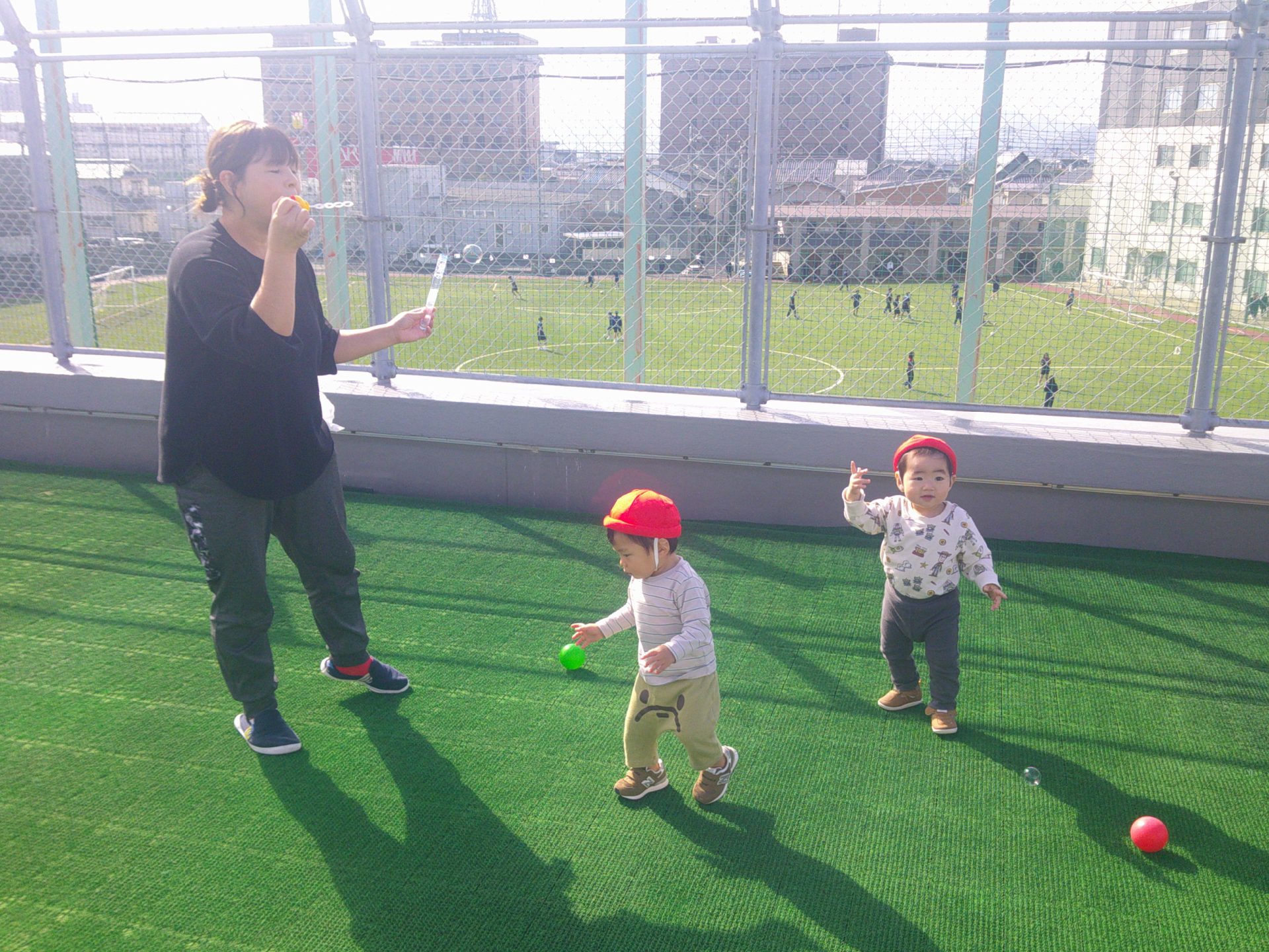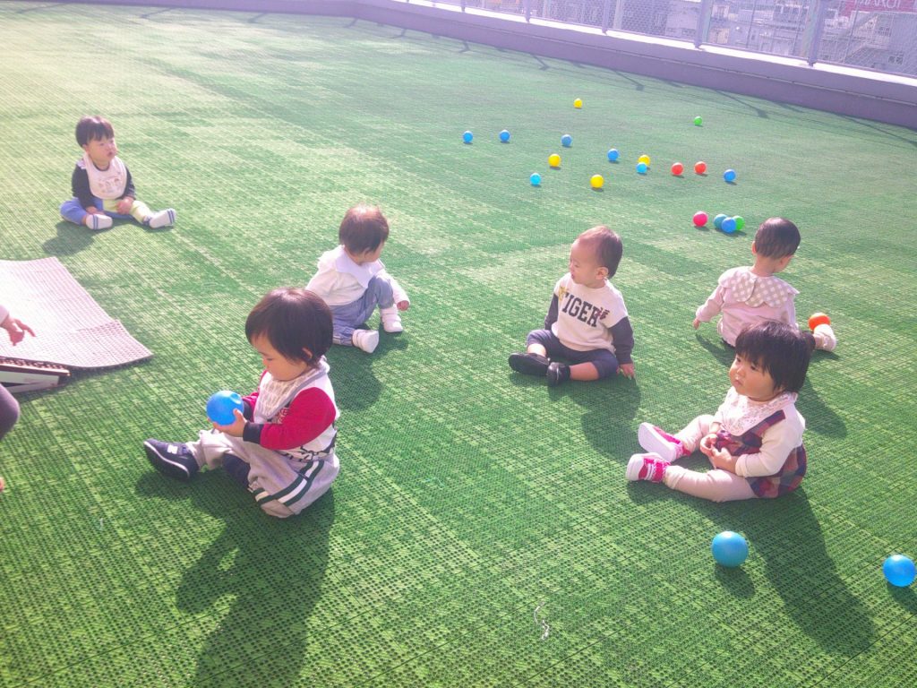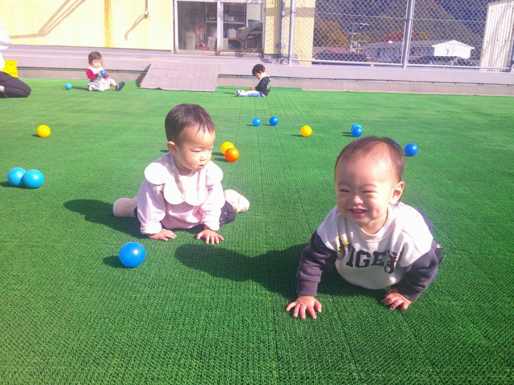 日向ぼっこをしたり、たくさんハイハイや歩行をしたりして楽しみました♪