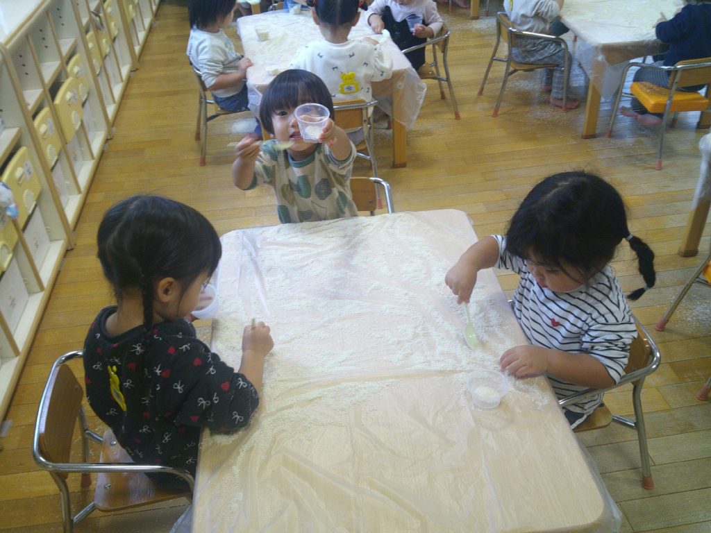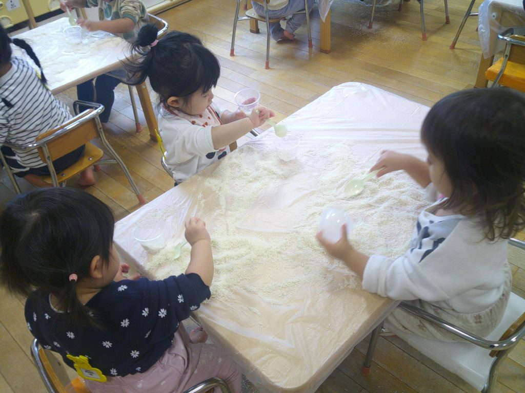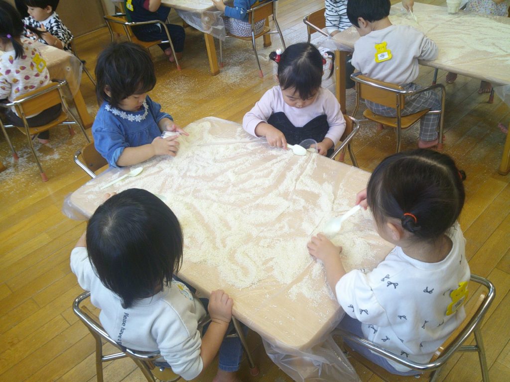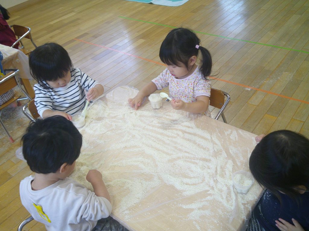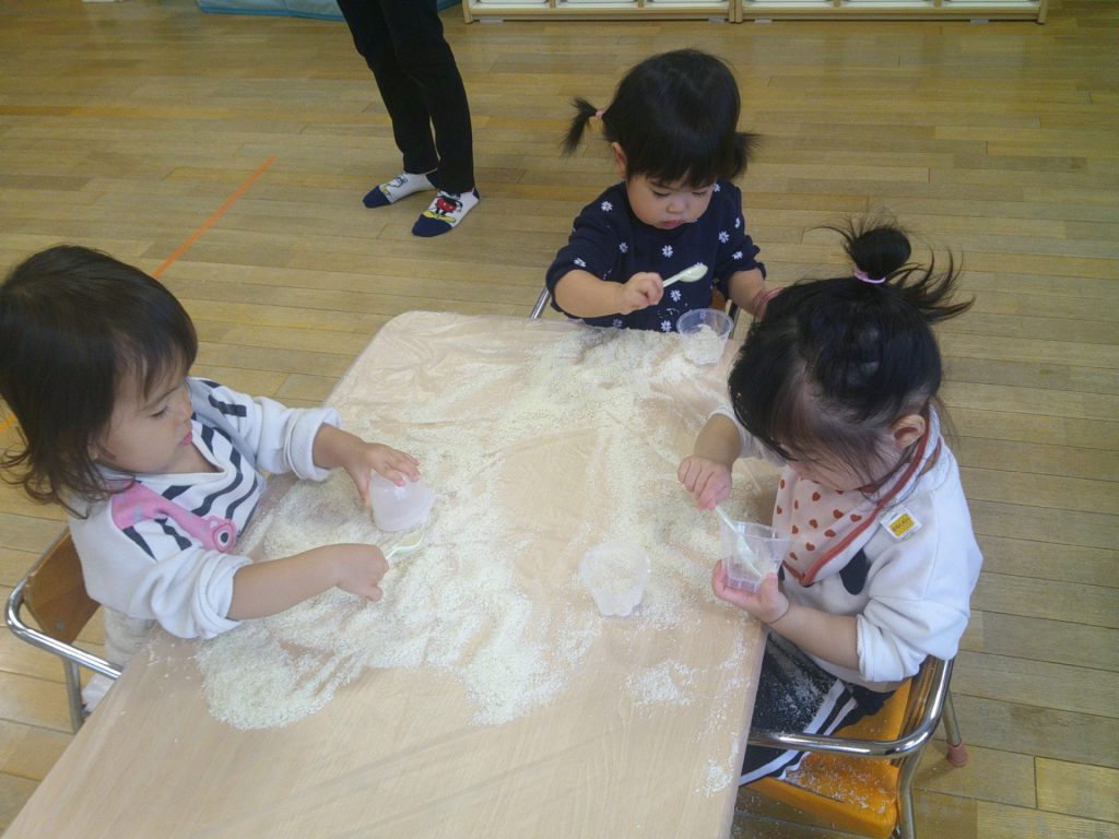 今回は、「パン粉」です。みんなが、夢中で遊びました。