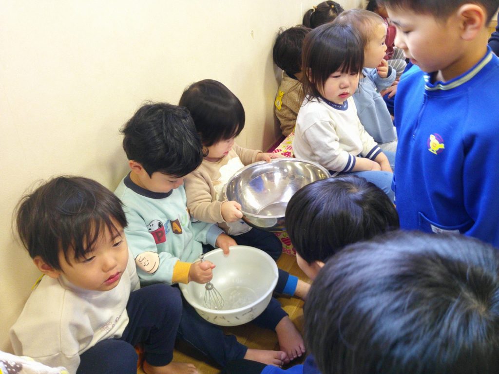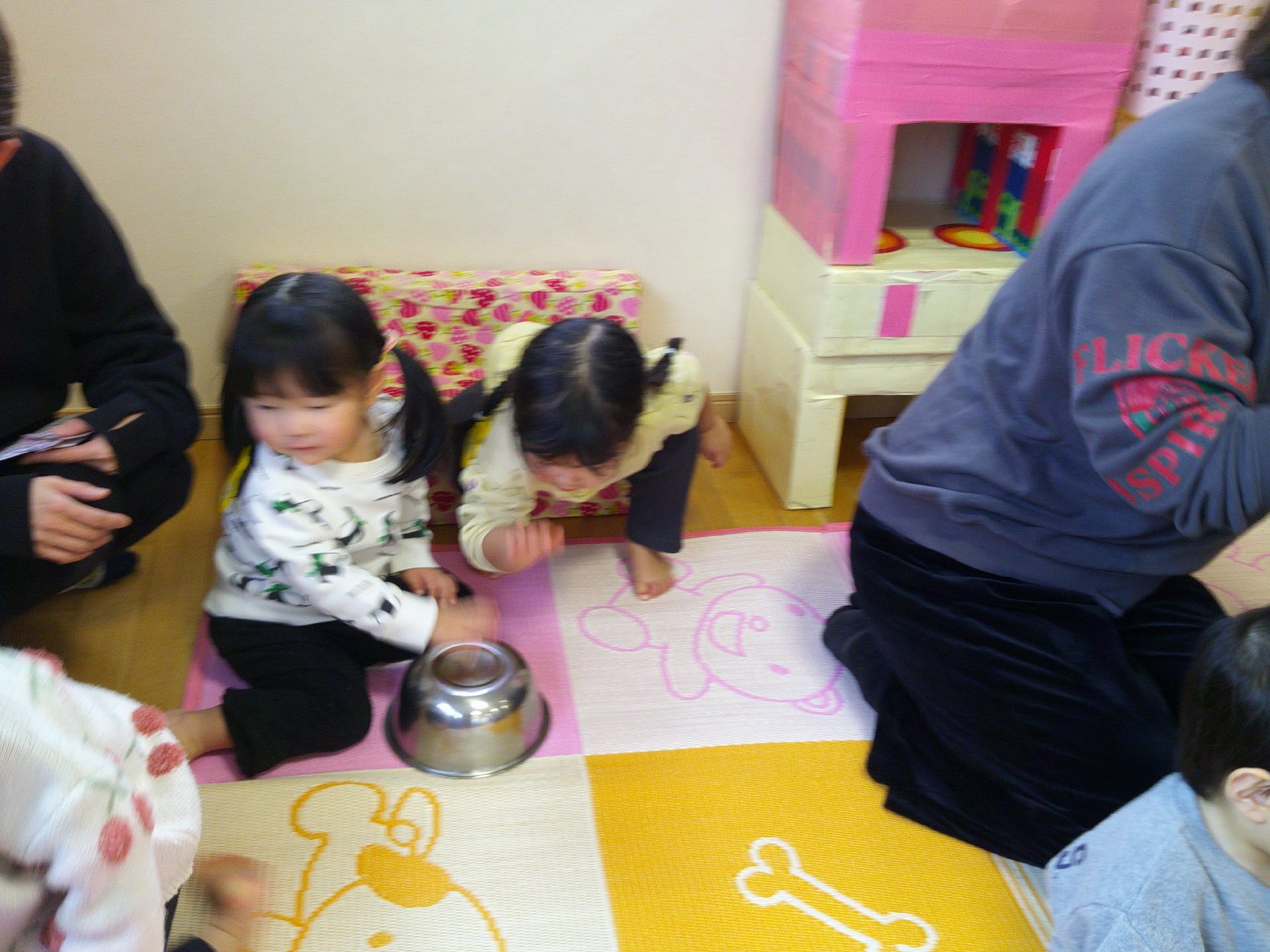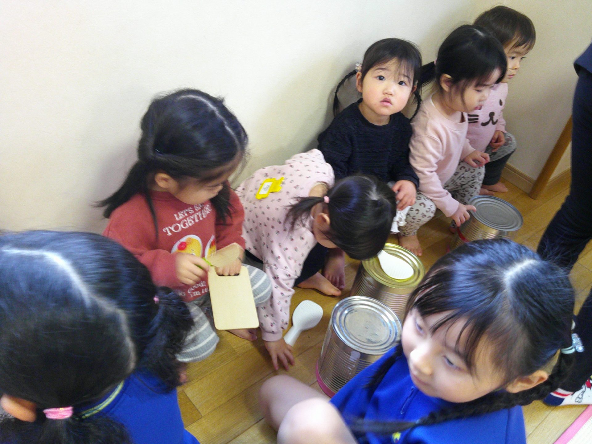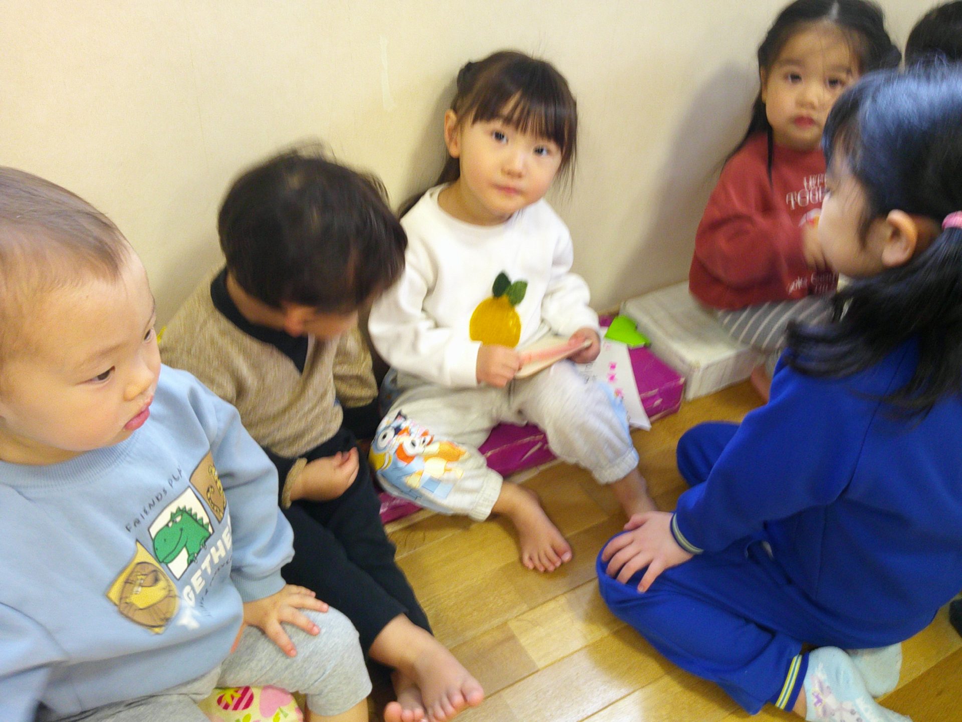 2026年03月10日 「キッチンバンド」がきてくれたよ♪ うぐいす組のお兄さん、お姉さんが「キッチンバンド」を披露しに来てくれました。 演奏を聴くだけでなく、楽器を触らせてもらい、大喜びの子ども達でした。