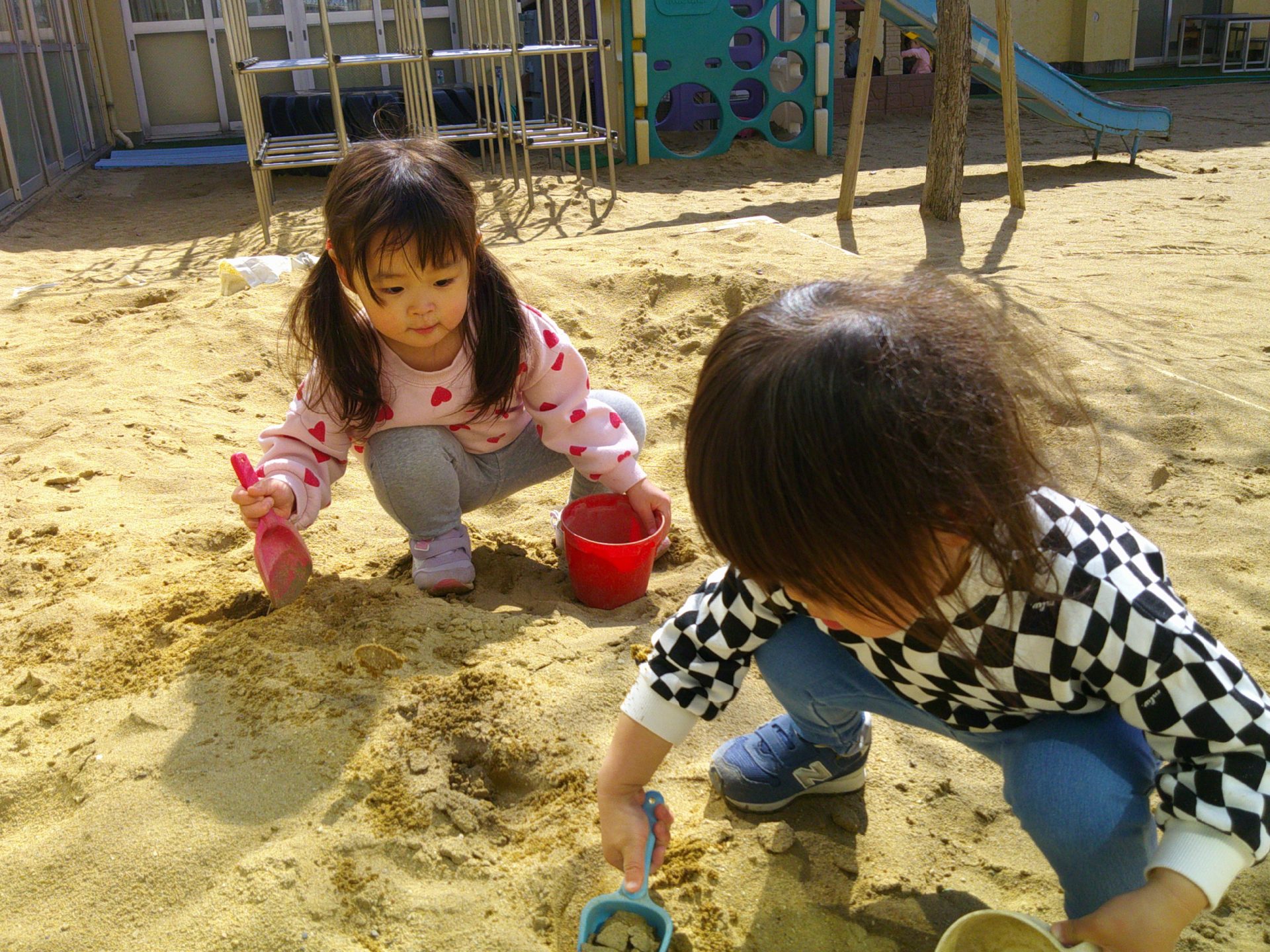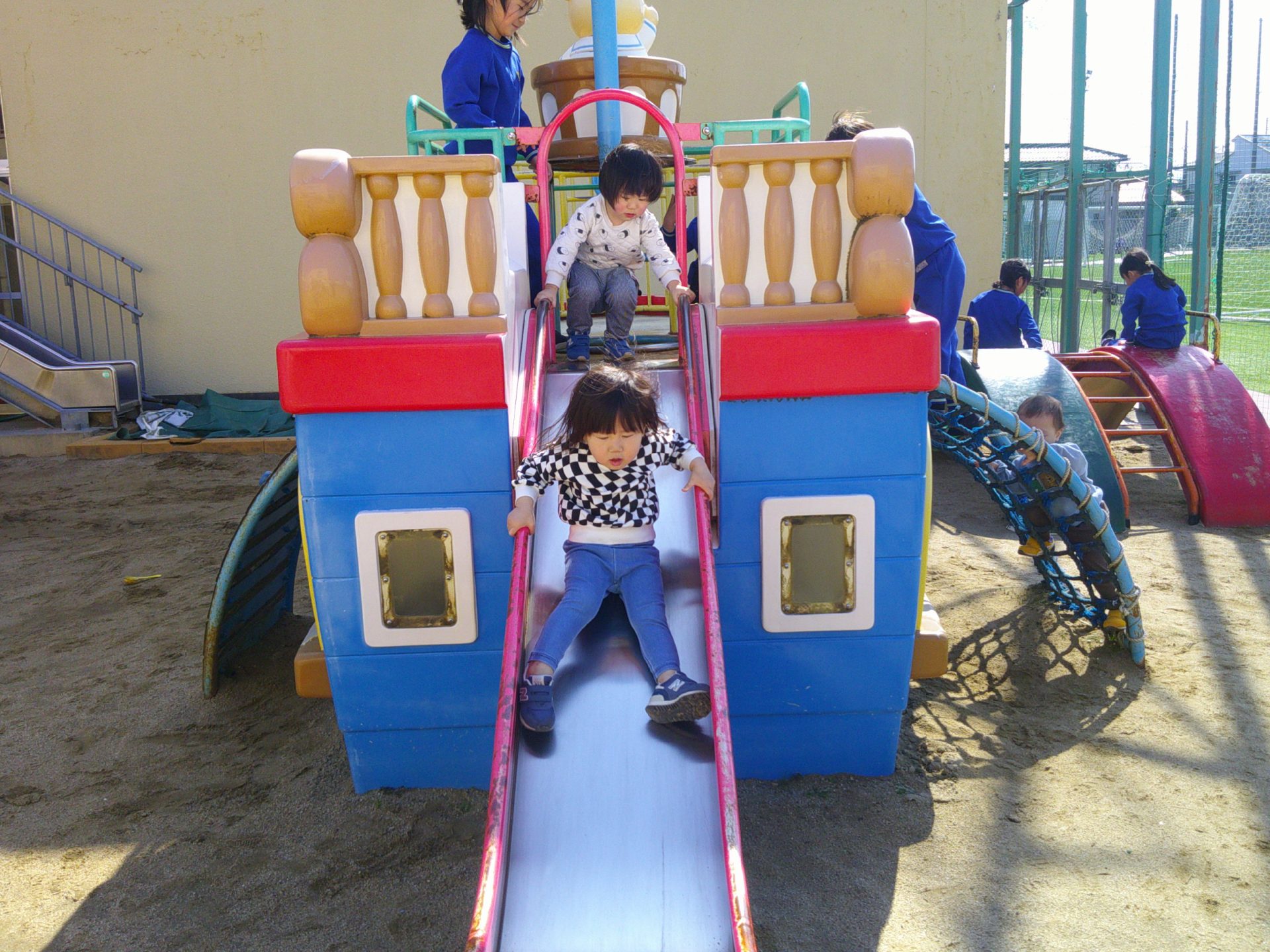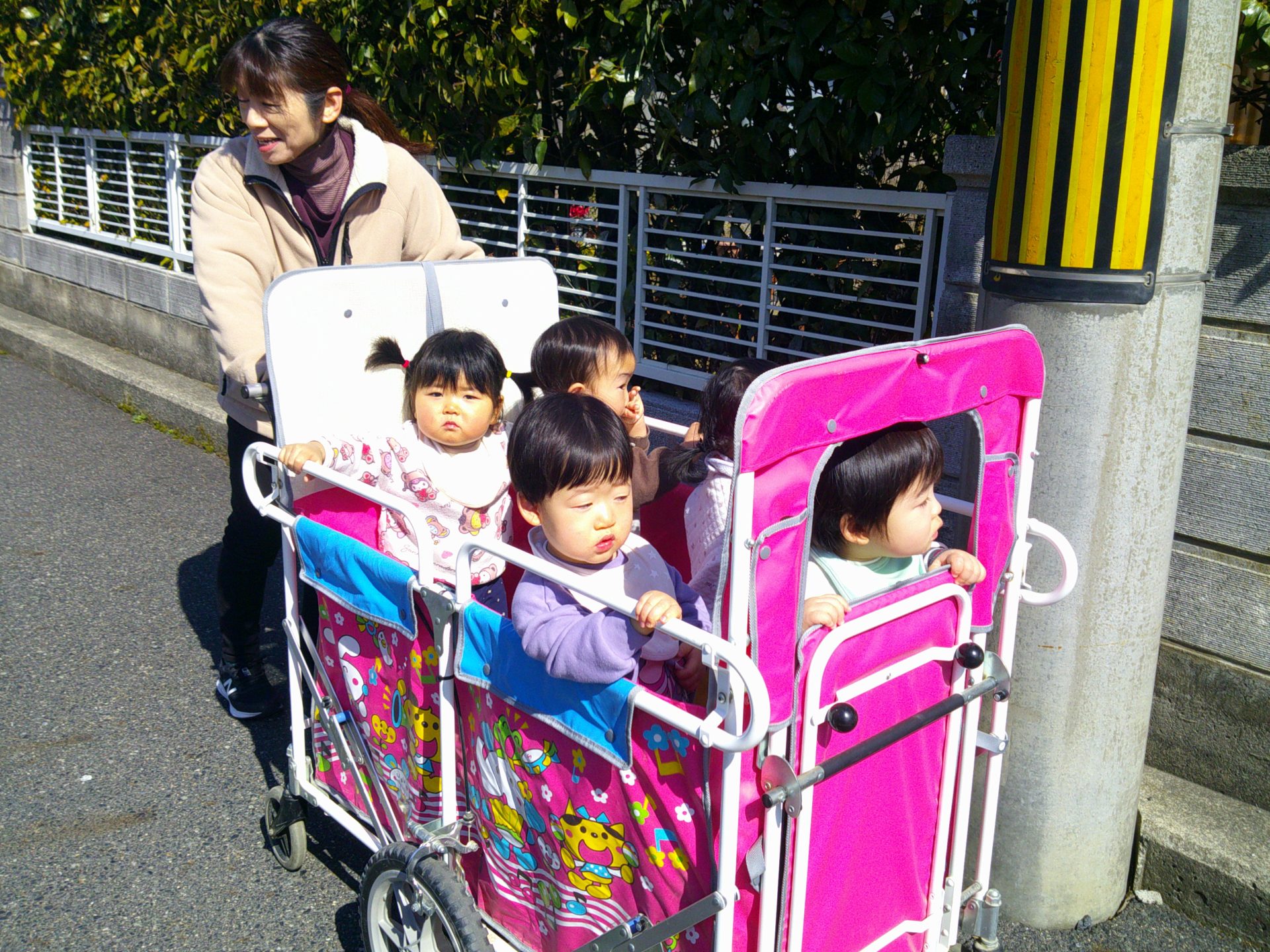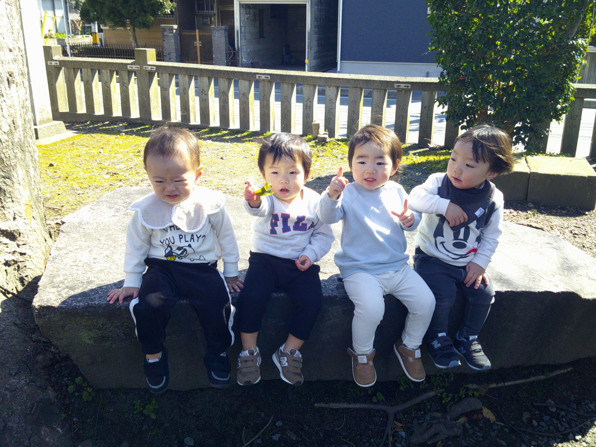 2026年03月17日 わくわく散歩✌ みかん組、いちご組で近隣の大森神社に誘導ロープを持って上手に歩いたり、避難車に乗ったりしながら行ってきました。どんぐりや葉っぱを探しながら楽しむ子ども達でしたよ☺