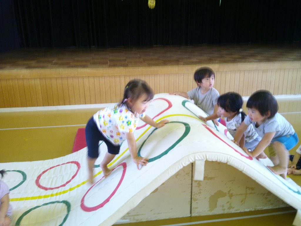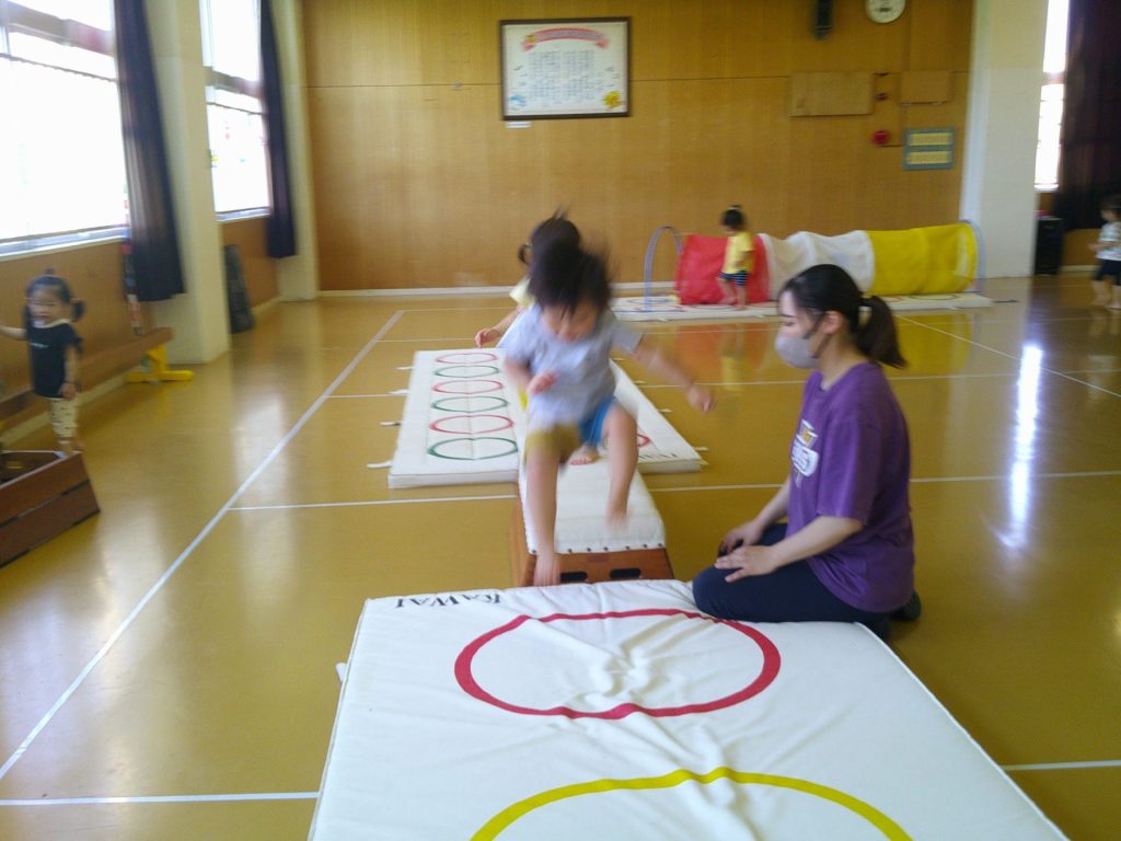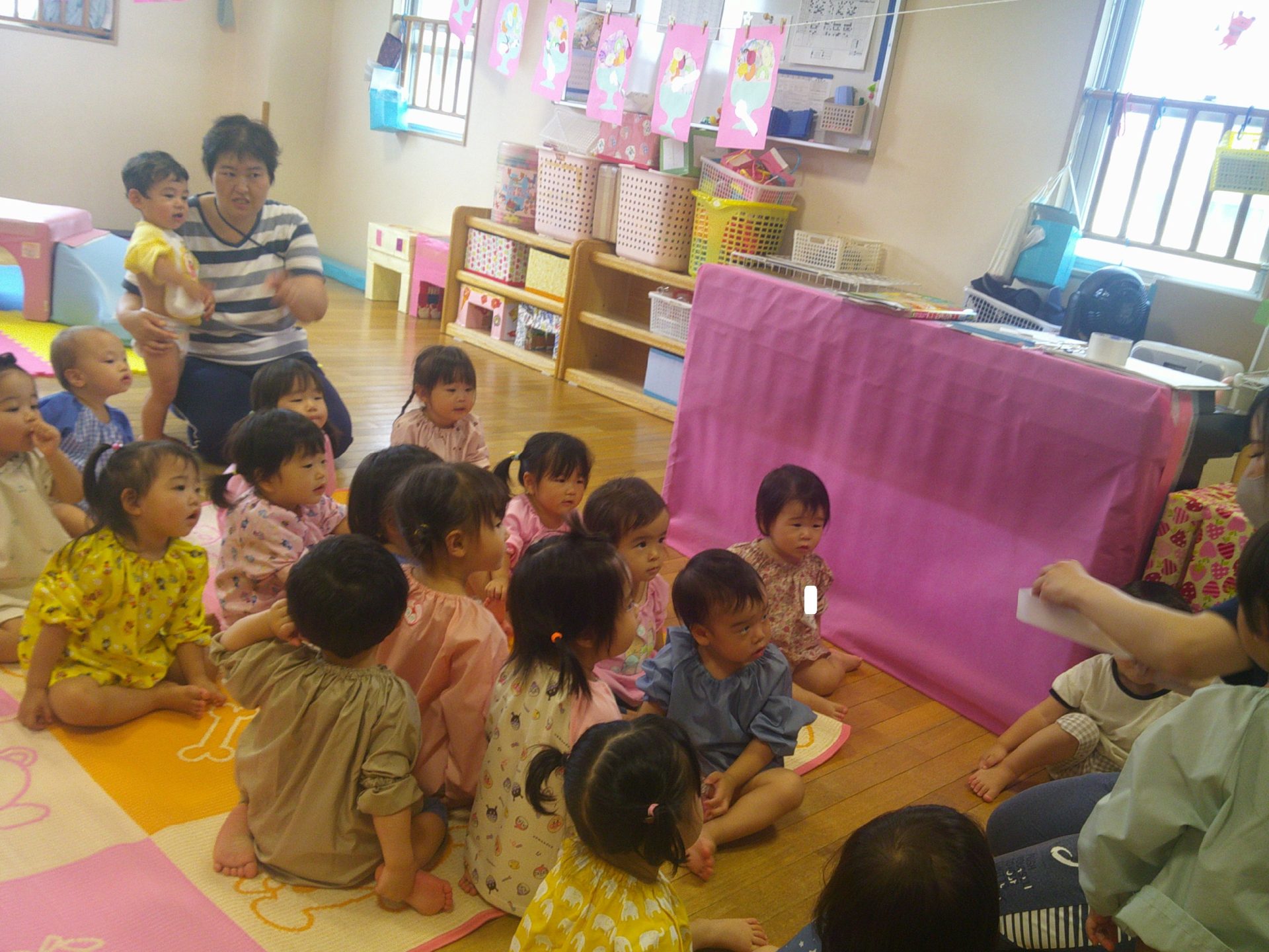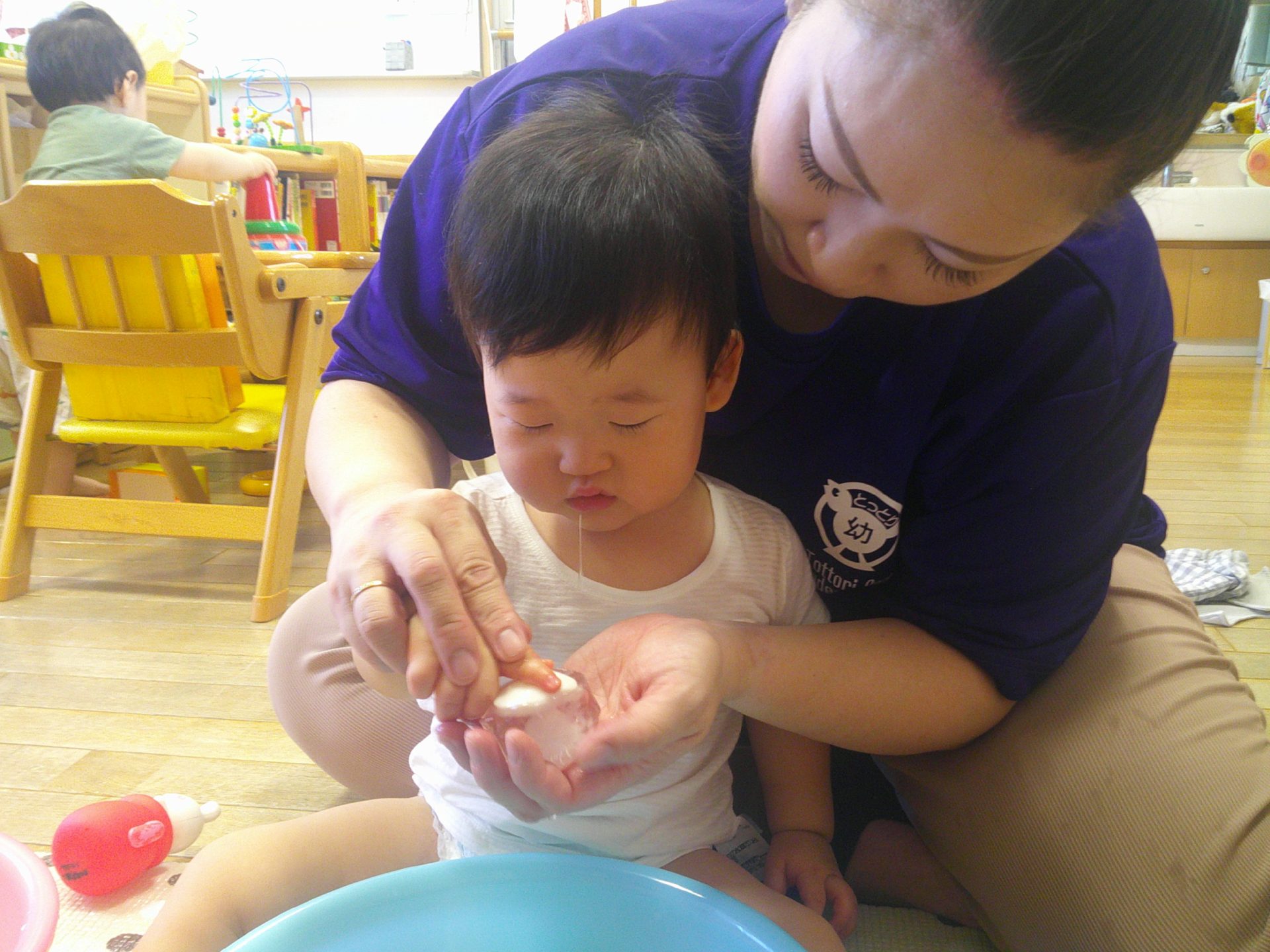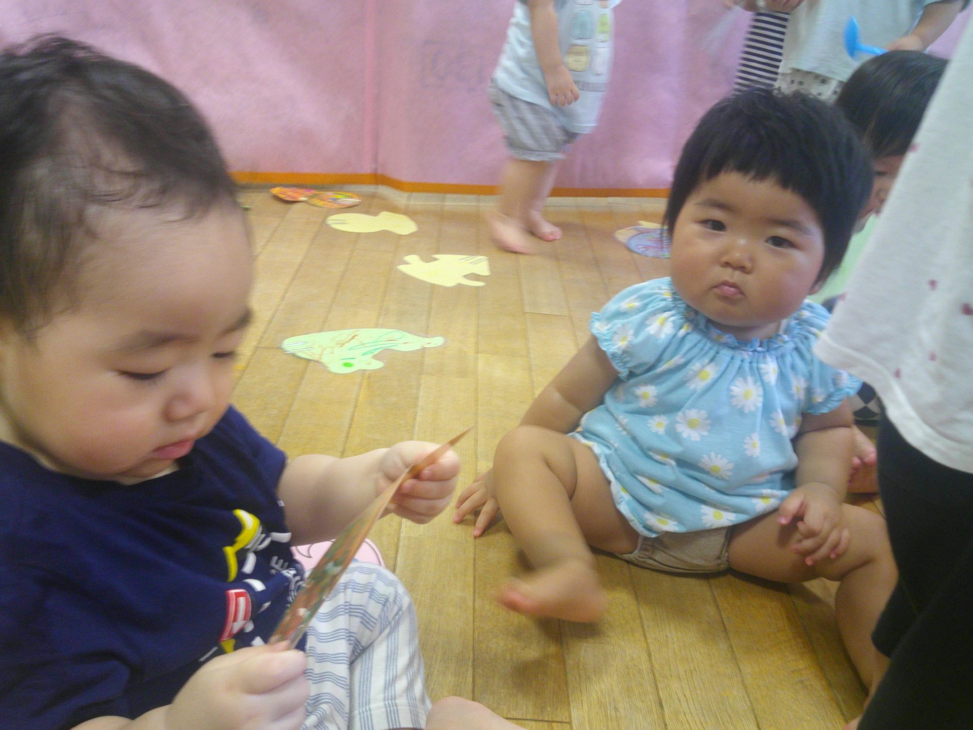 2025年07月31日 最近のいちご組の様子 今週から新しいお友達が増えて、いちご組は6名になりました。 暑い日が続いていて、プール遊びはできていませんが、お部屋で先生やお友達と色々な遊びを楽しんでいます。今週は、氷で作ったバスボールの中から出てくるおもちゃを触って遊んだり、みかん組のお友達と一緒に魚釣りと魚すくいをしたりして楽しみました♪