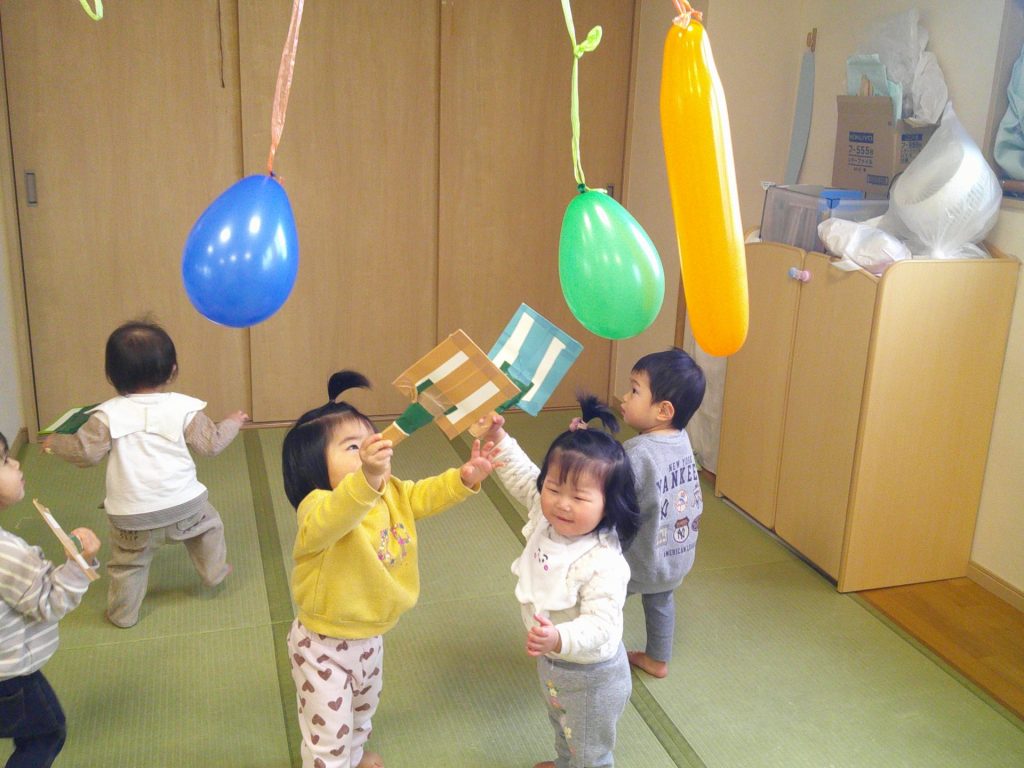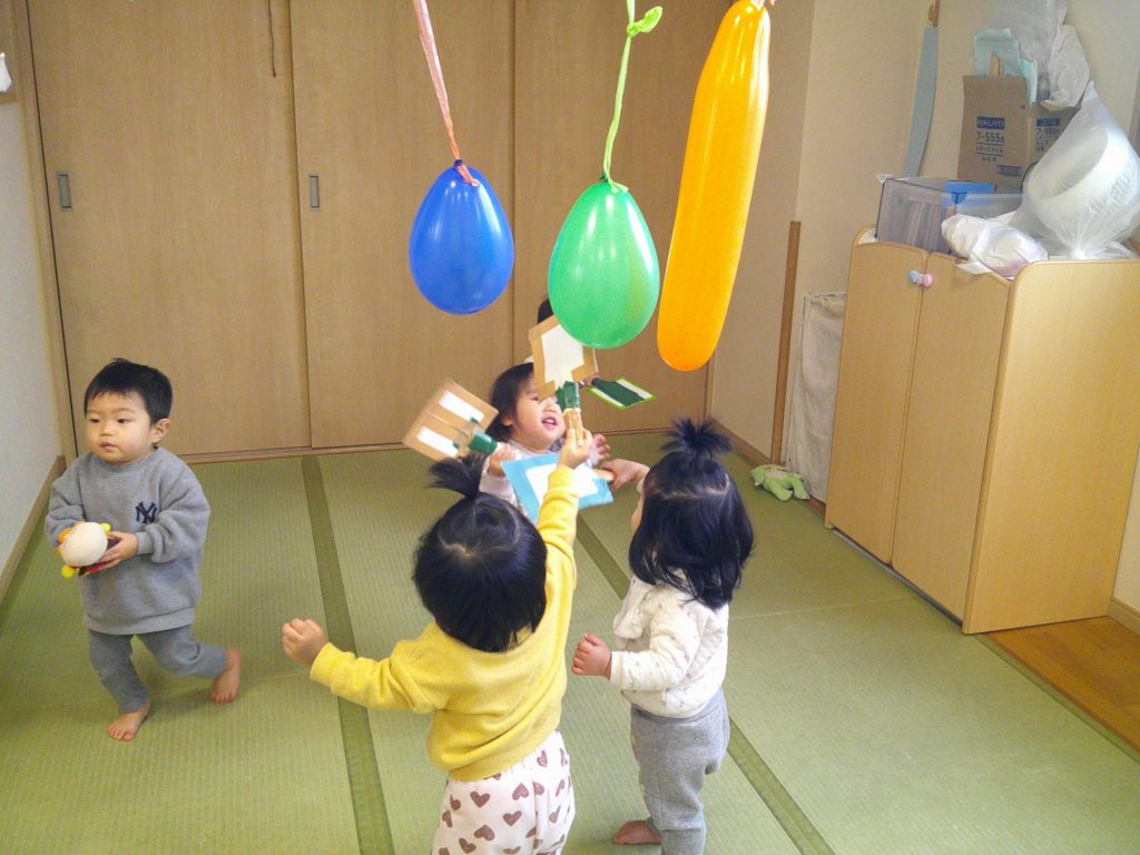 作品展に向けて制作をしたり、風船で羽子板遊びをしたりして楽しみました♪雪も降り、お部屋から雪にも触れましたよ☆