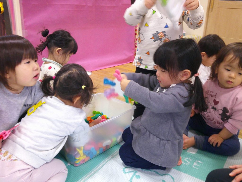 3/12(木)「親子でふれあい遊びをしよう」10:30~11:30 みんなで一緒に歌ったり、音楽に合わせて親子でふれあい遊びを楽しみましょう♪ 楽しいエプロンシアターもします!