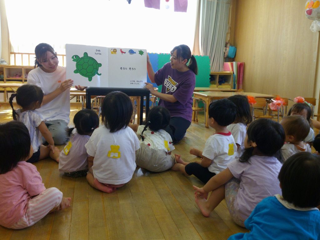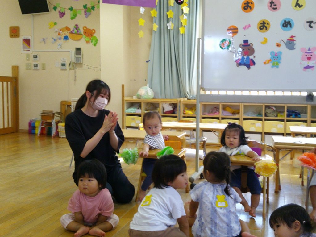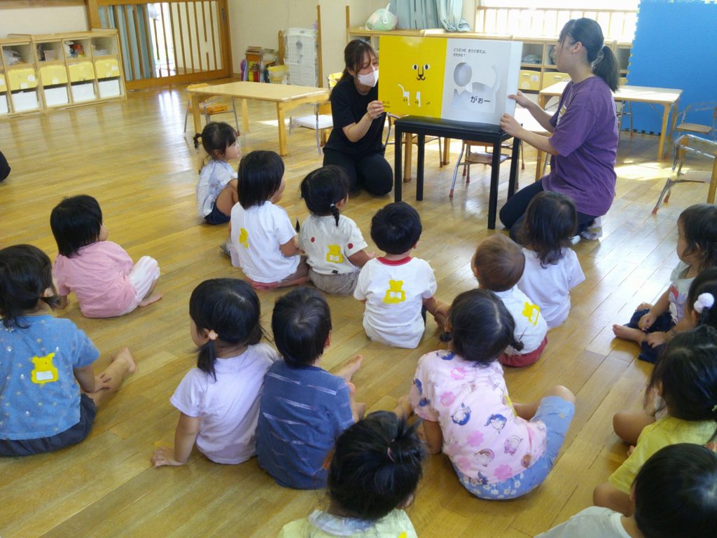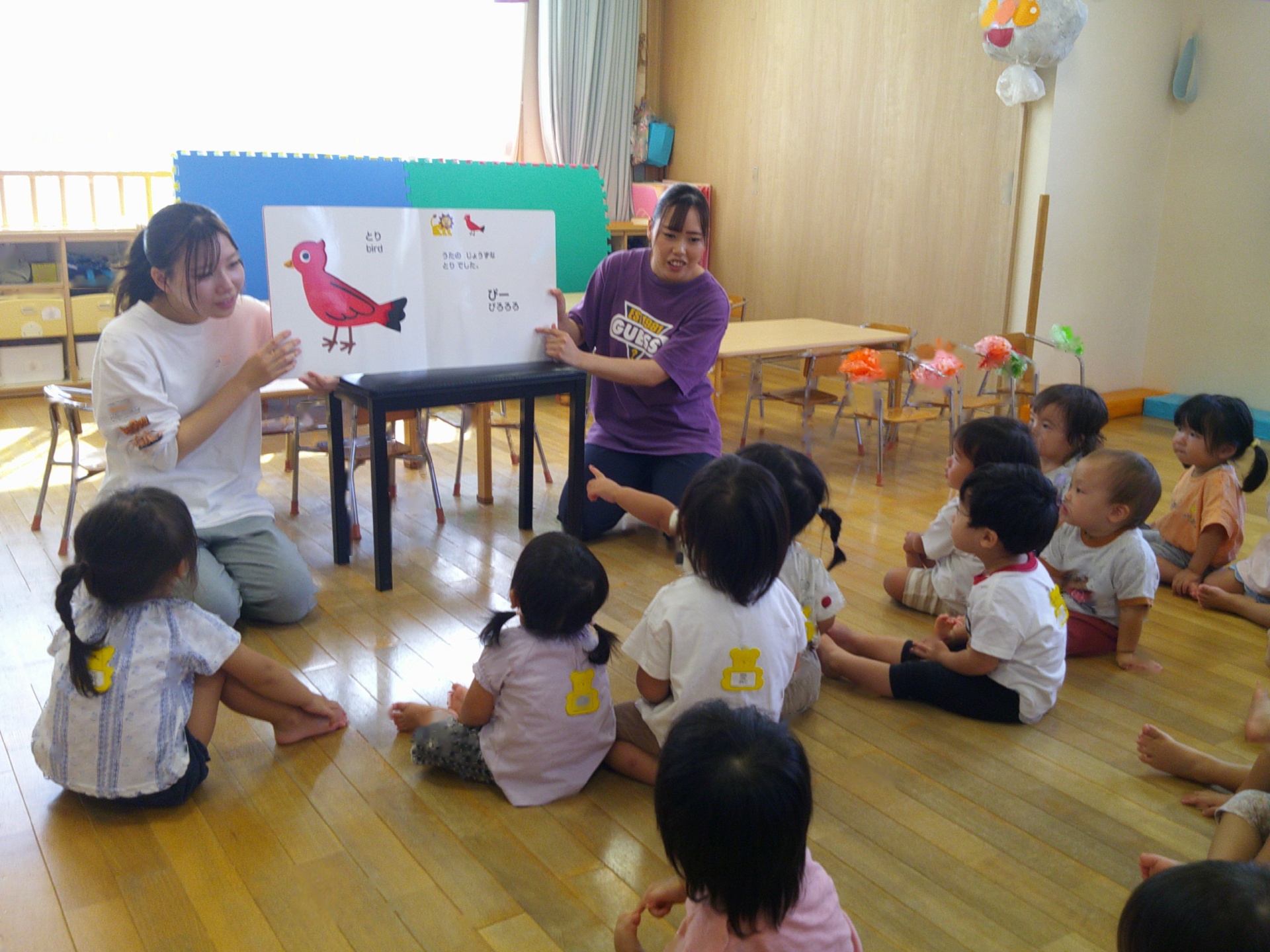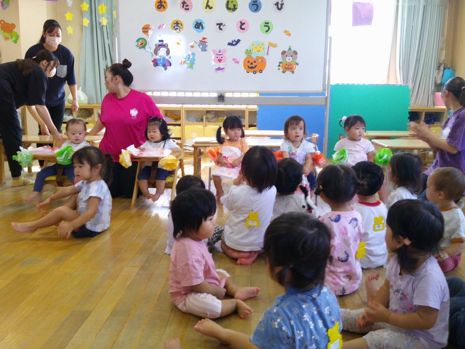 2025年10月15日 ☆10月誕生会☆ 10月の誕生会がありました。5名のお友達をお祝いしました! 「大きな栗の木の下で」の歌を歌ったり、絵本の読み聞かせのプレゼントをしてもらったりして、みんなでにぎやかく楽しいひと時を過ごしました。 先生によるお楽しみコーナーでは、「どうぶついろいろかくれんぼ」の大型絵本を見ました。「ライオン」や「かめ」「くじら」など、知っている動物が登場すると、その名前を言葉や鳴き声で教えてくれる子ども達の姿も多く、見ていてとても微笑ましかったです。 改めまして10月生まれのお友達、お誕生日おめでとうございます🎂🎉