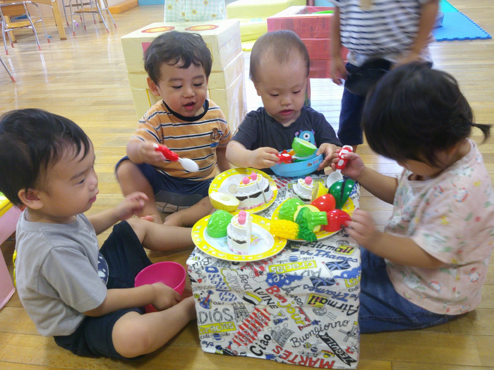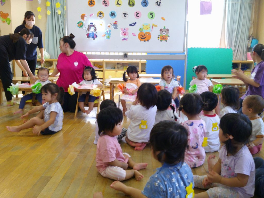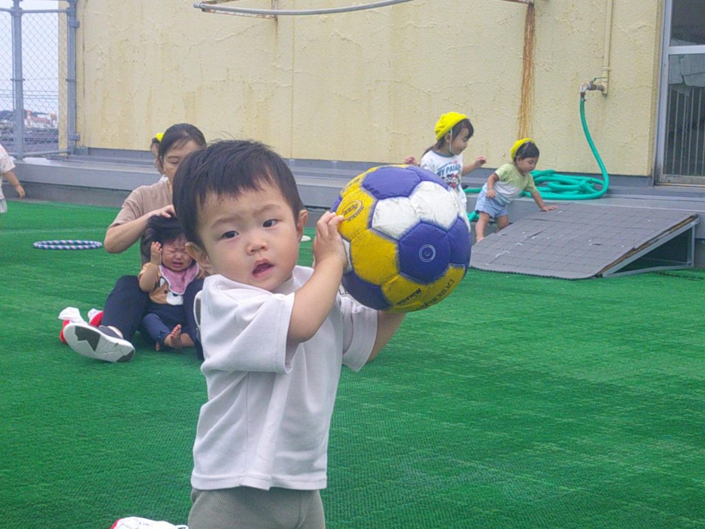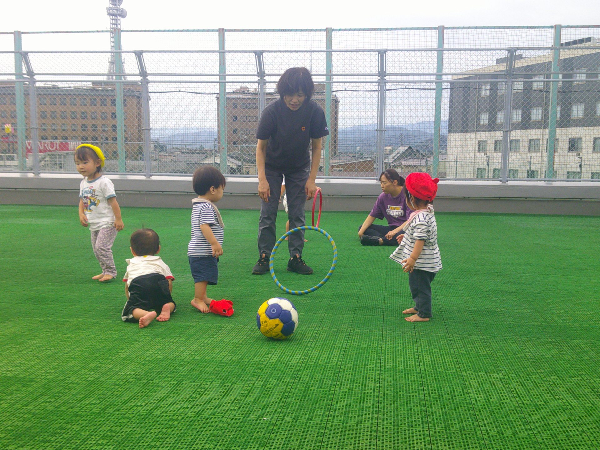 2025年10月08日 屋上で遊んだよ! 先週、屋上に遊びに行きました。 フラフープやボールを持って遊んだり、ハイハイしたりしてたくさん身体を動かして楽しみました♪ また、みかん組のお友達と一緒にシャボン玉を追いかけて楽しむ子ども達でした。