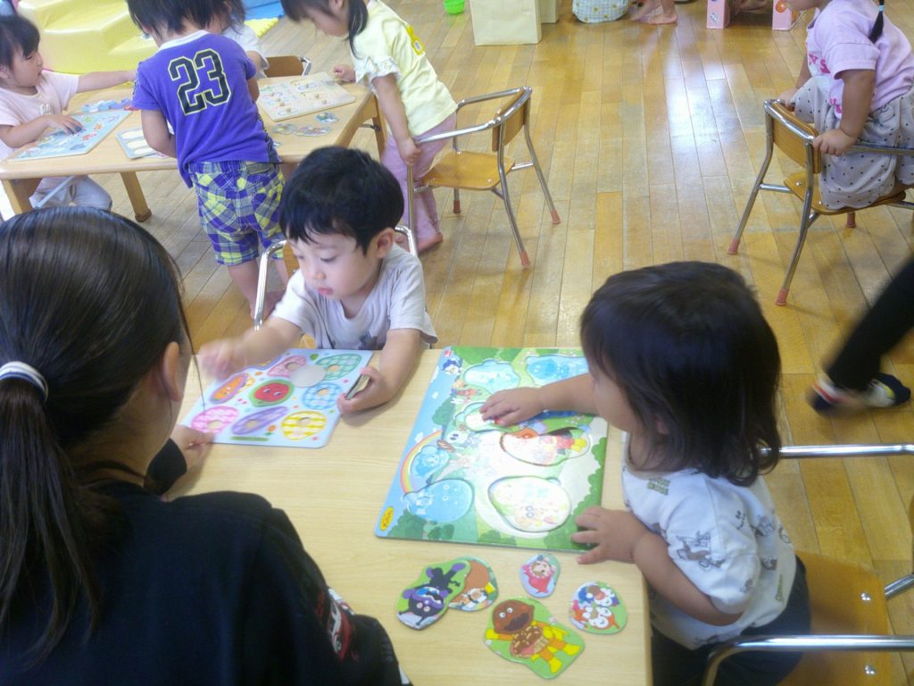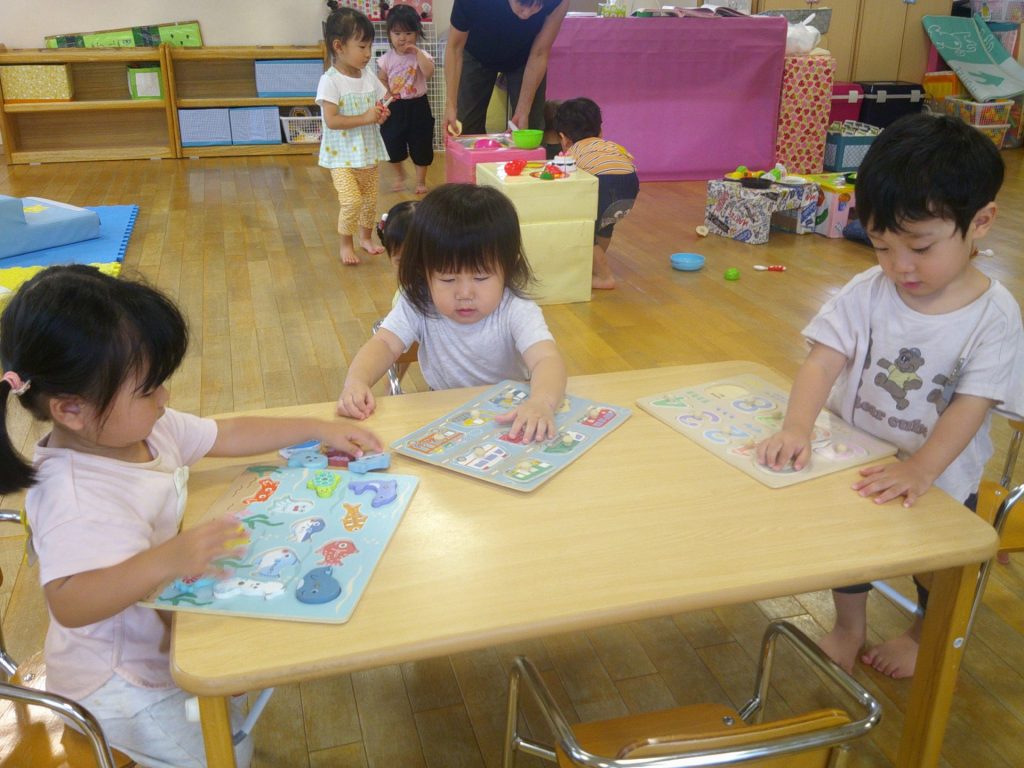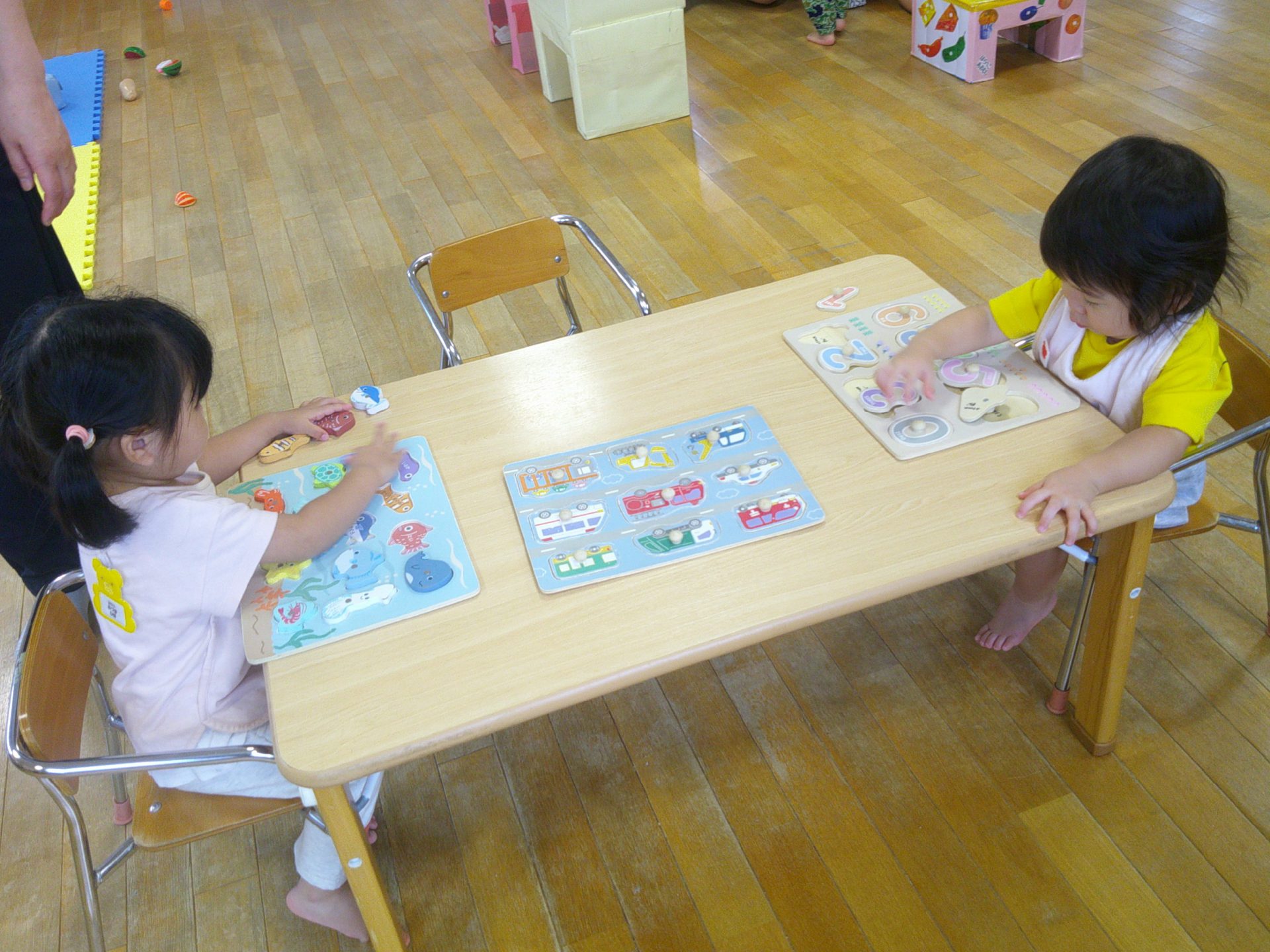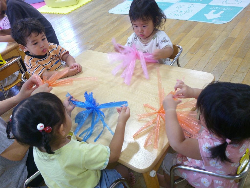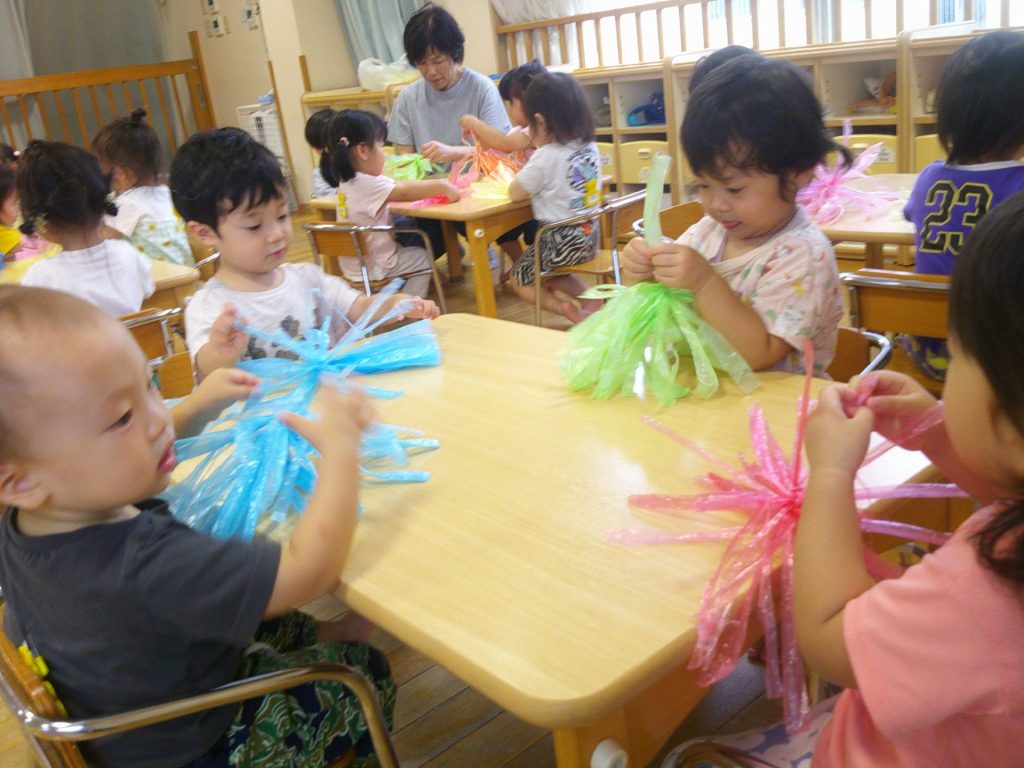 2025年10月16日 指先遊び「裂く」 今日の指先遊びは、「裂く」活動をしてみました。スズランテープを指で裂いて・・「モジャモジャおばけ」にしました。 コロコロ~・・楽しいね。遊びの一コマです。 コーナー遊び パズル、絵本、ままごと、アイス(スプーンでコットンボールをカップに入れる)の4つのコーナーから、自分の好きなコーナーを選んで遊びました。