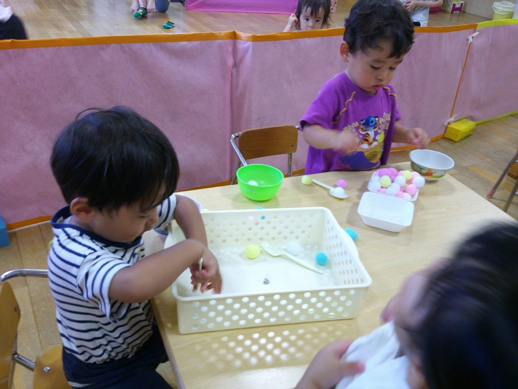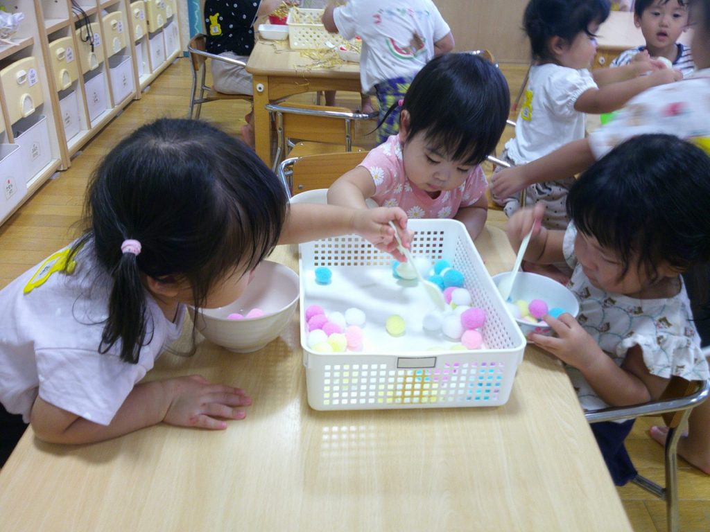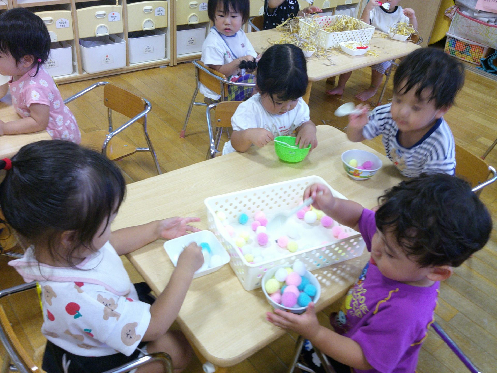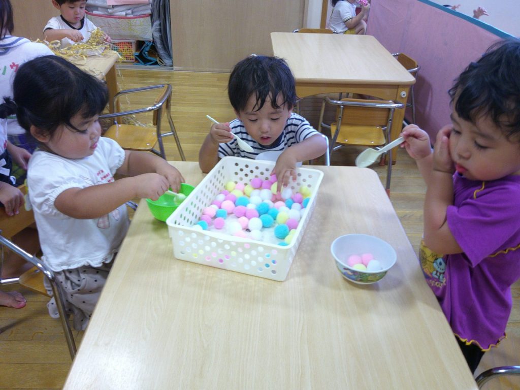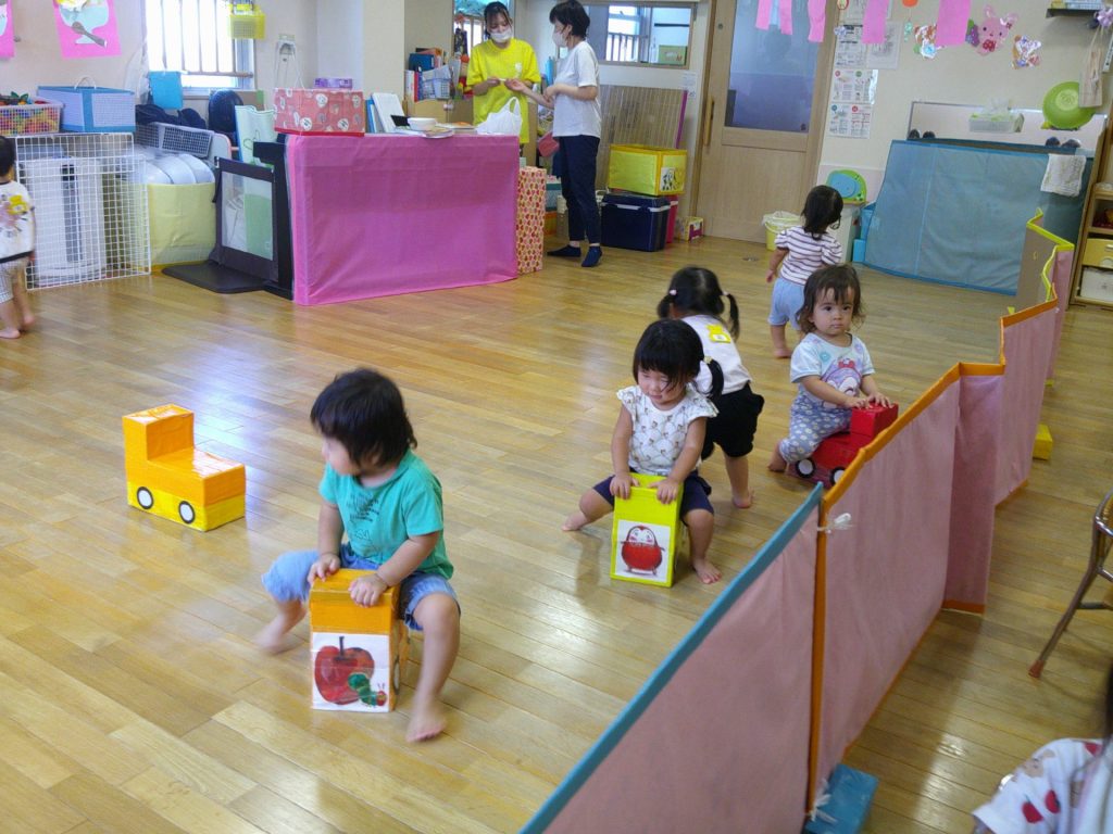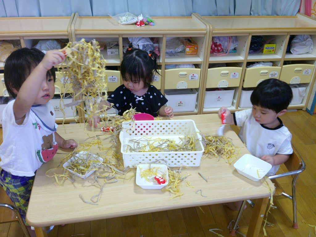 2025年08月25日 新聞紙で遊んだよ! 今日は、久しぶりに新聞紙遊びをしました。以前、遊んだ時には、新聞紙をちぎったり、やぶったり、雨に見立てたり、上に上げて落ちてくる様子を見て楽しむ姿が多く見られましたが、今日はそれに加えて、おにぎりのように握り、友達や職員に食べさせてみたり、丸めてボールのようにして「ぽん」と投げたりして楽しむ姿が見られました!遊びの内容に変化も見られ、改めて成長を感じました✨