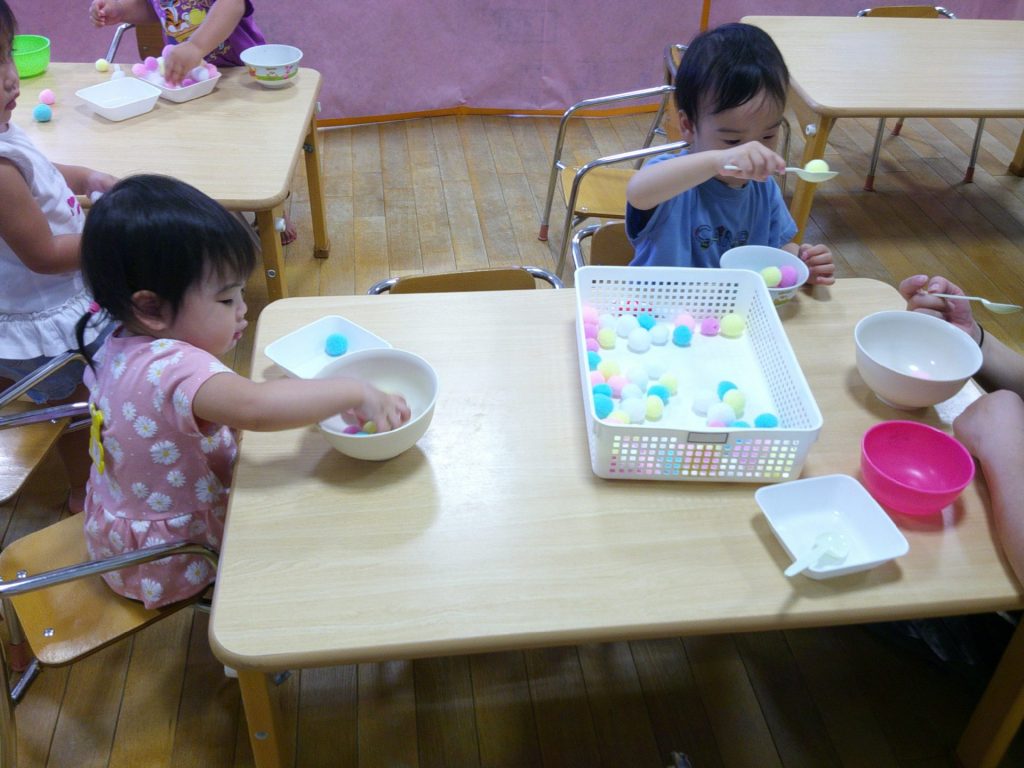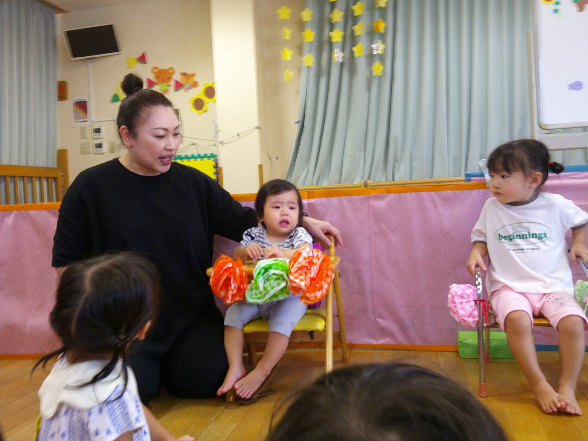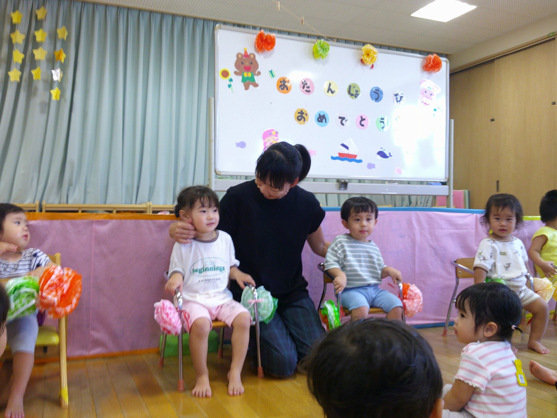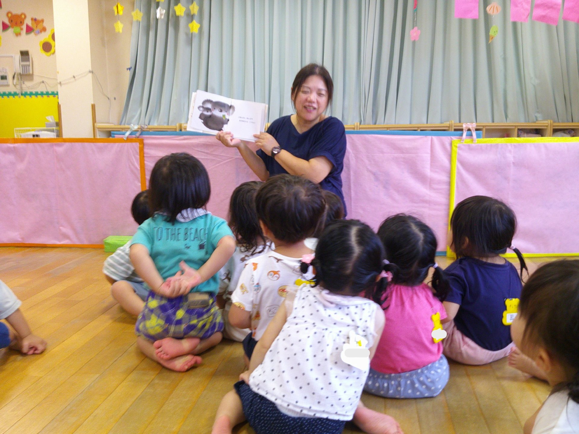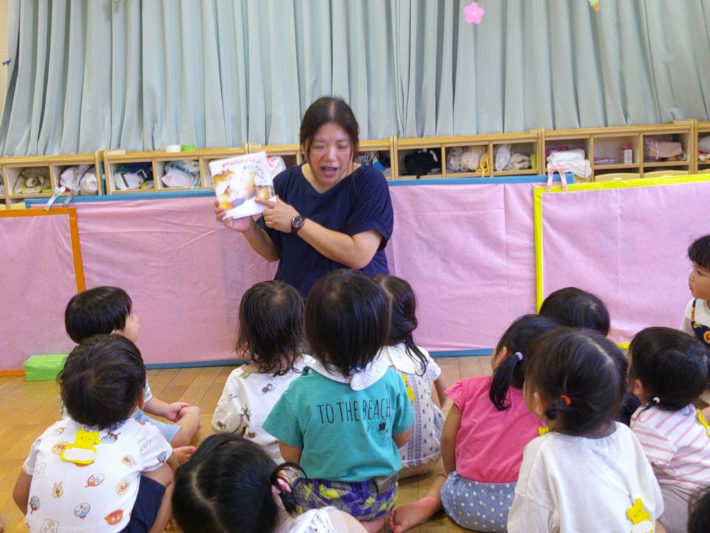 2025年08月26日 8月の誕生会(^▽^) 今日は8月生まれの子ども達の誕生会をしました。歌を歌ったり、園長先生からの絵本の読み聞かせをしてもらったりして楽しみました!担当の先生からの「くいしんぼうのおばけ」のスケッチブックシアターに興味津々な子ども達でした。これからも沢山食べて大きくなってね♡お誕生日おめでとうございます🎂
