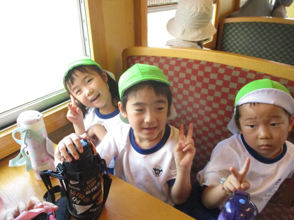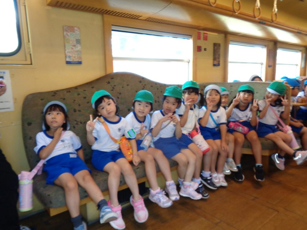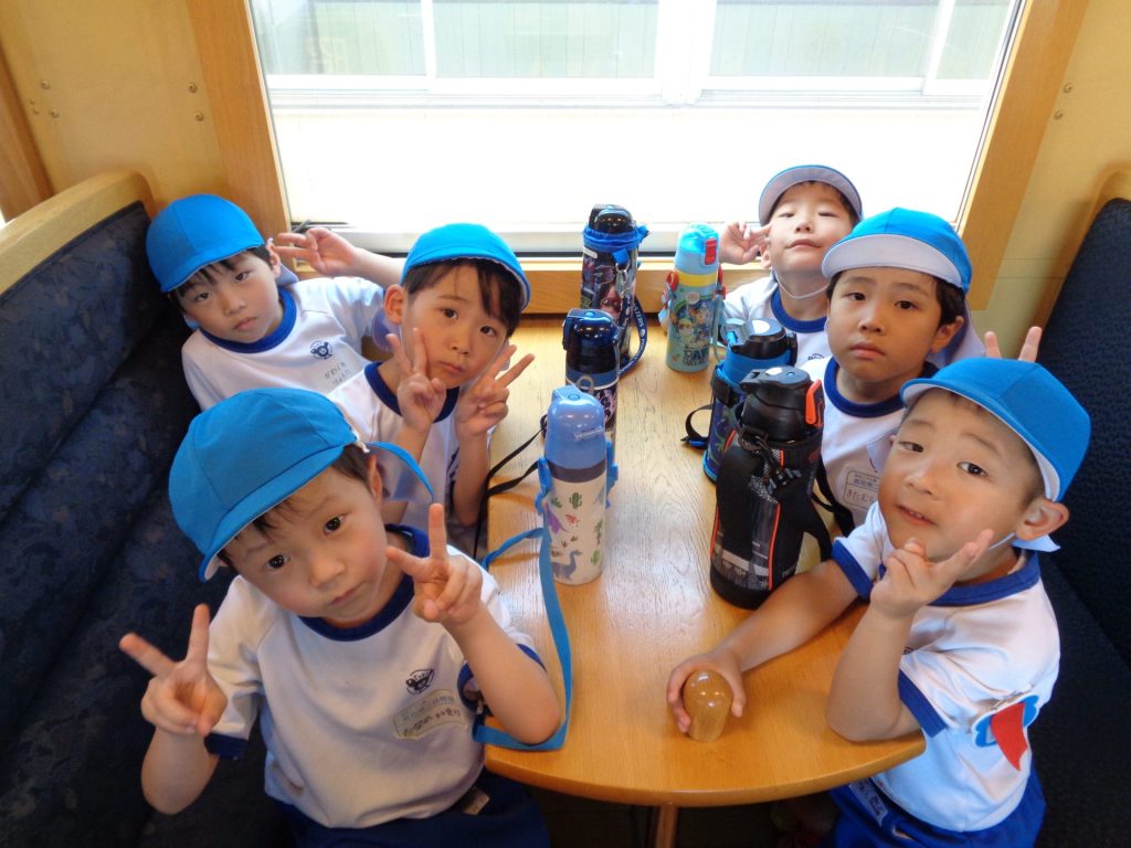 どきどき、わくわく!楽しいお泊り保育のスタートです♪汽車にのって若桜駅までレッツゴー!