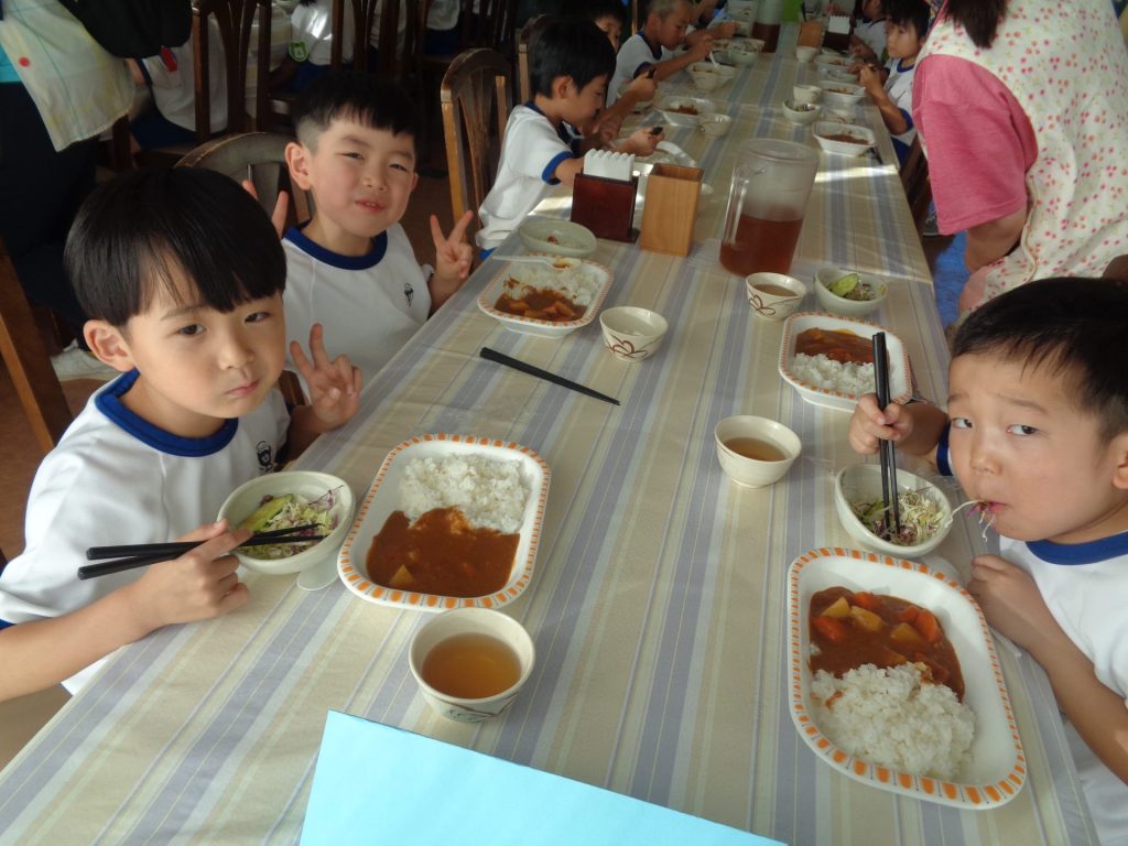 夕食はお楽しみのカレーライス♪おかわりもたくさんしました☆