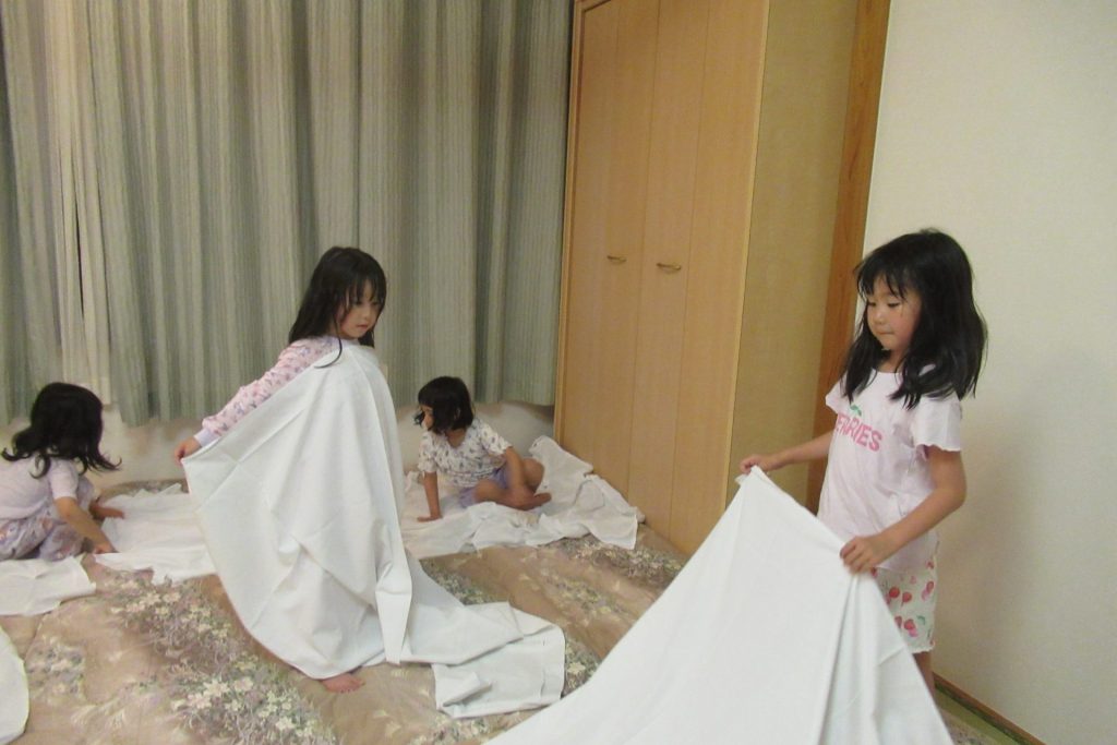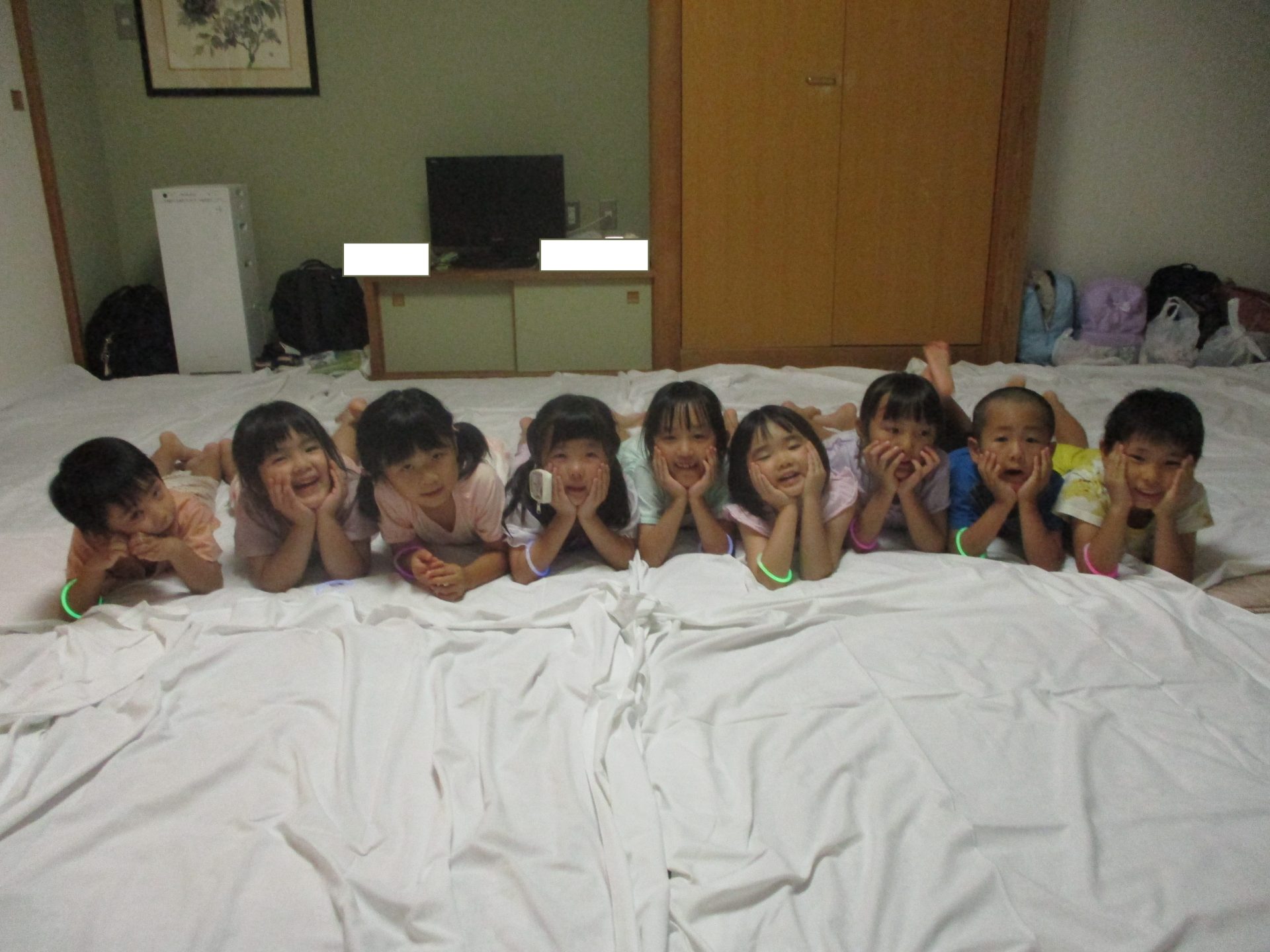 楽しかった1日も終わり…。たくさん遊んで楽しかったね(^^)お風呂に入って、おやすみなさい♡