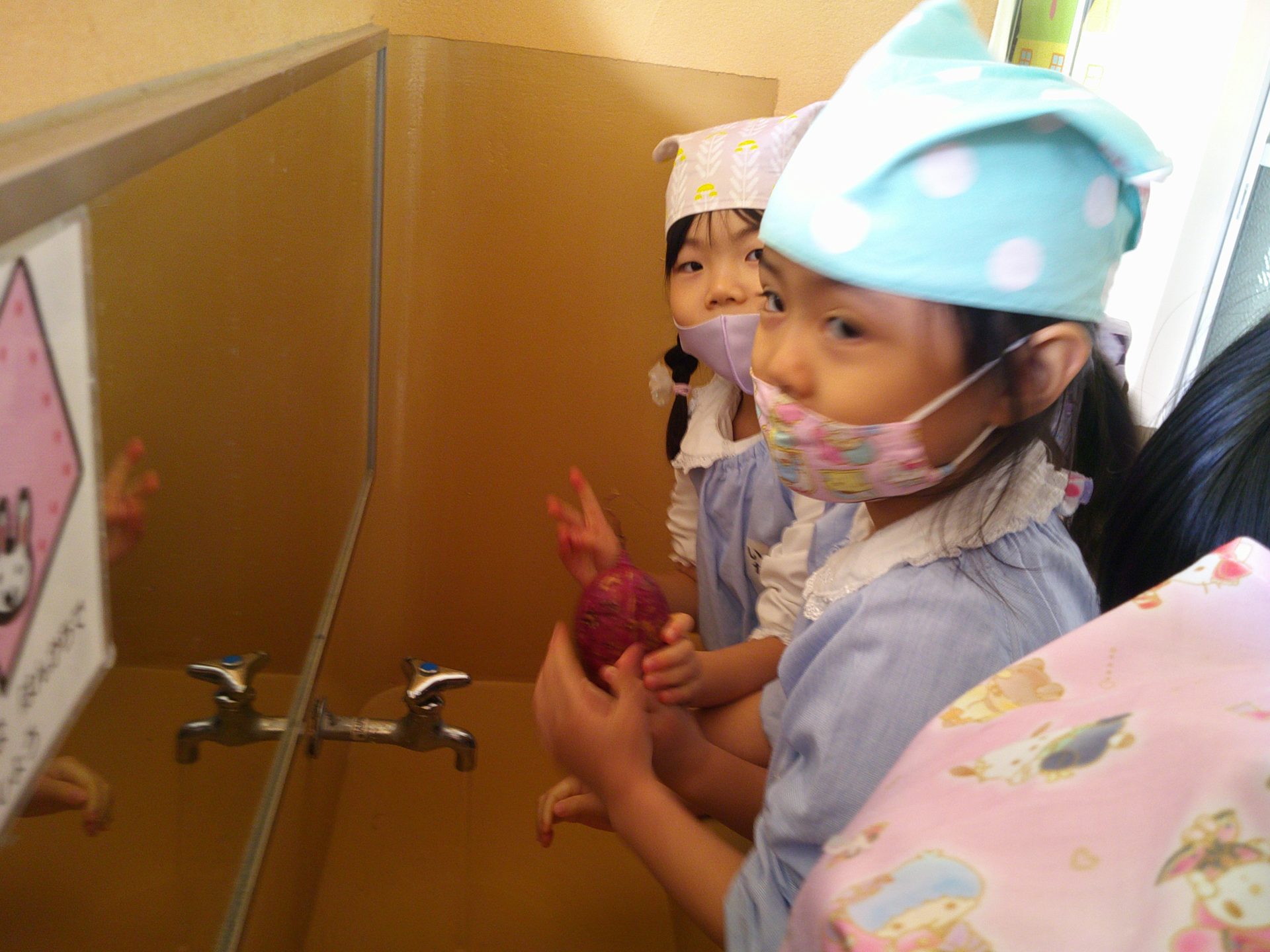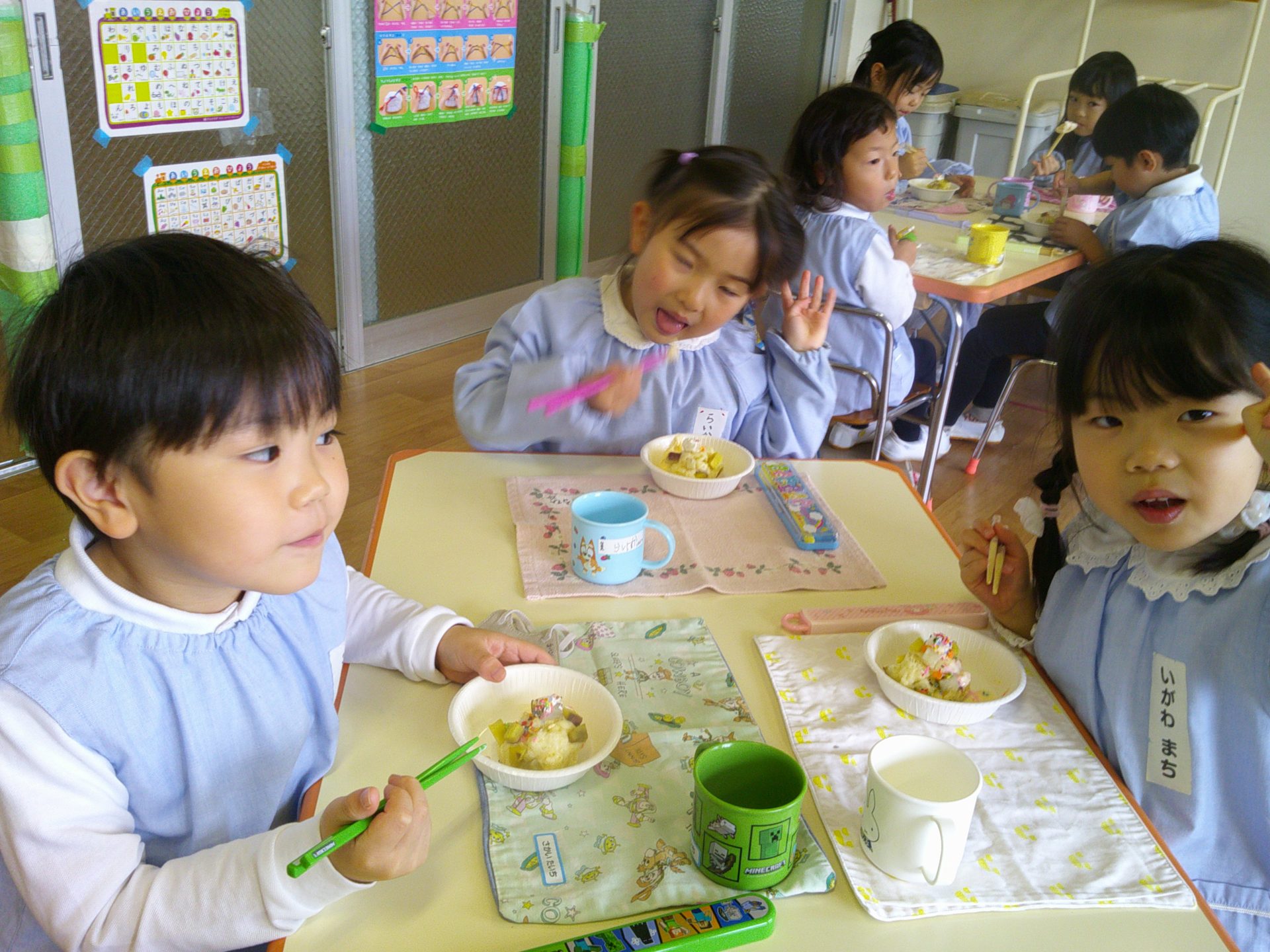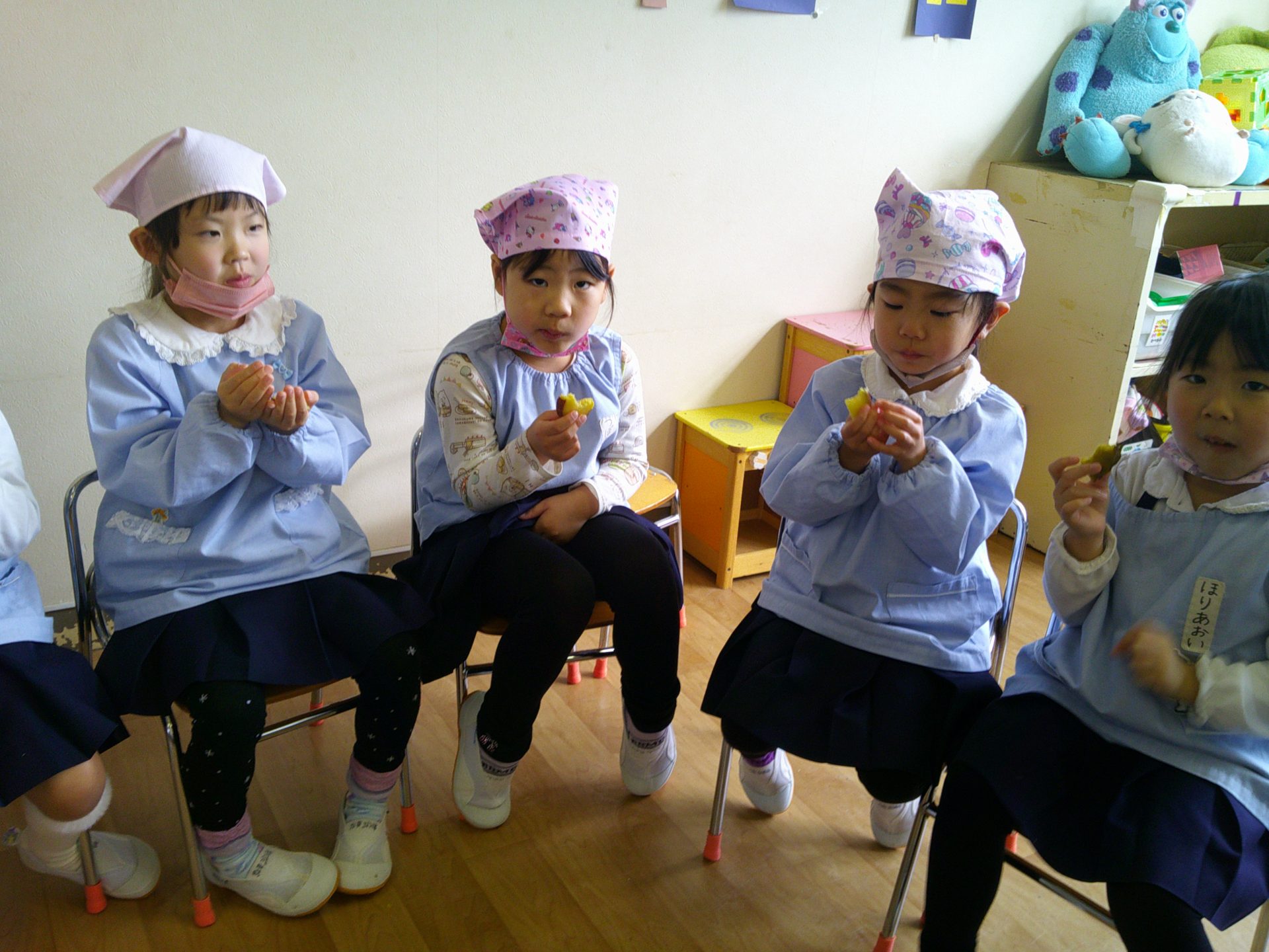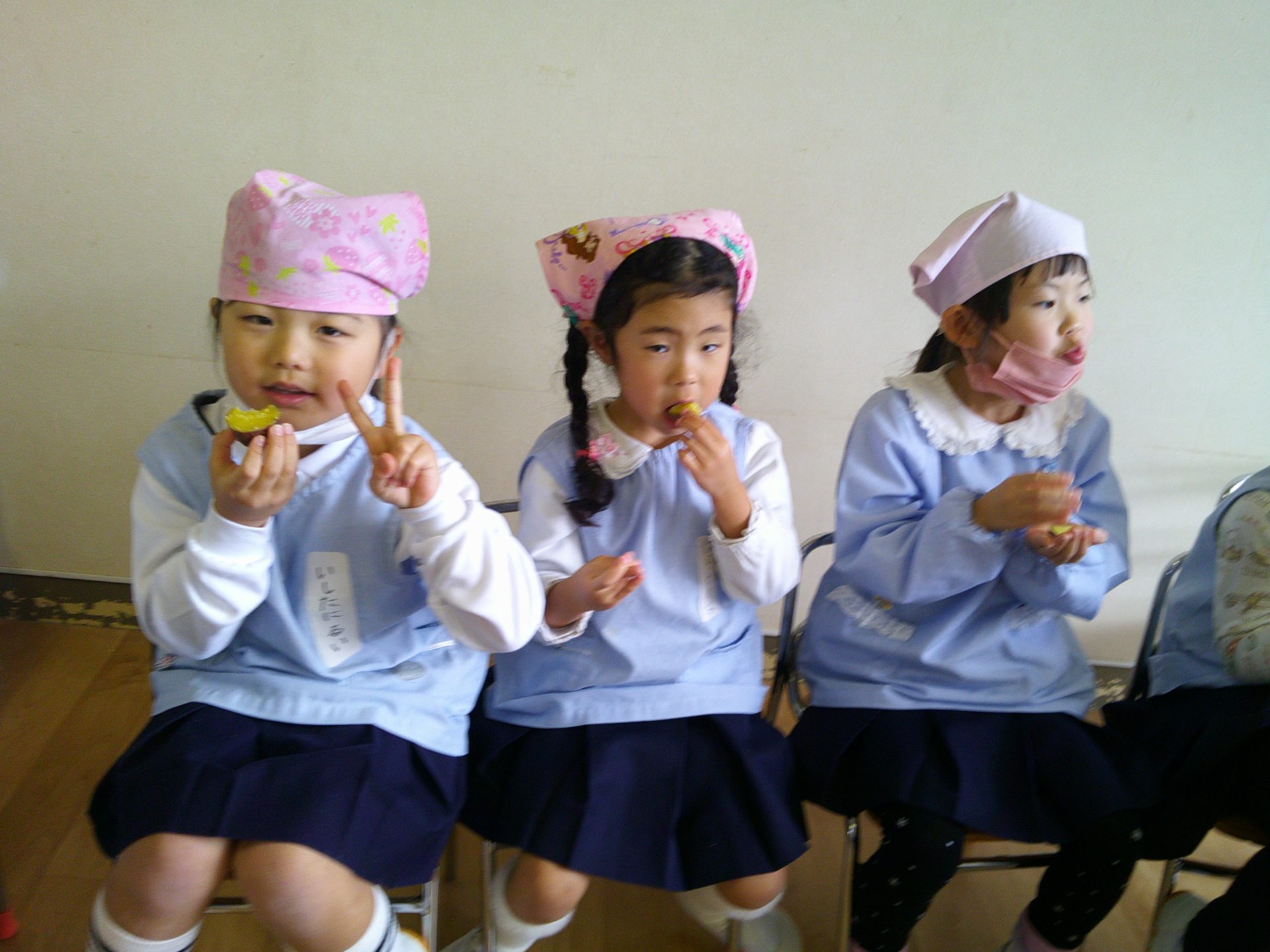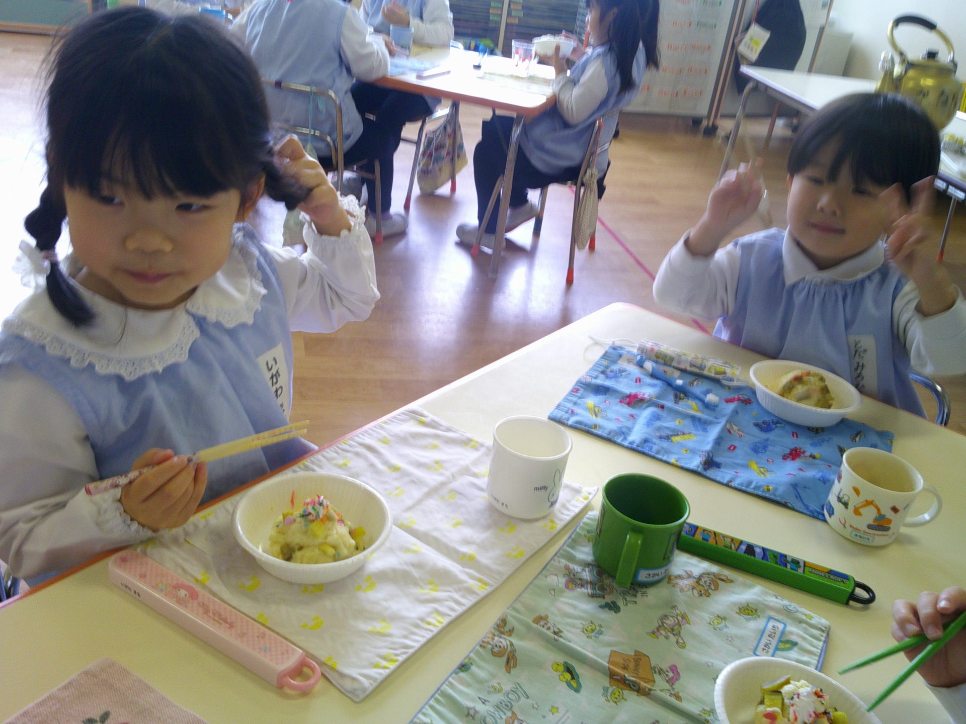 さつまいもクッキング第2弾の様子です。園の畑で収穫したさつまいもを使って蒸しパン作りをしました!