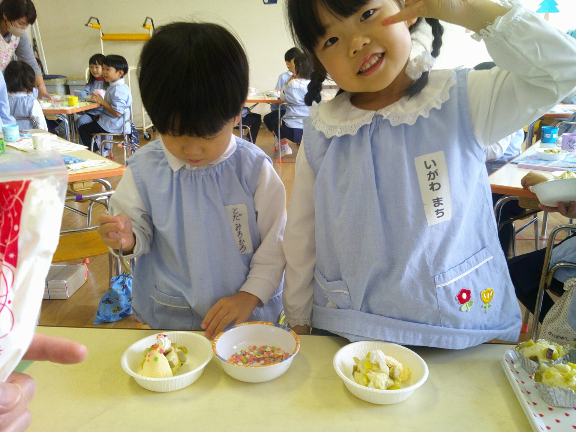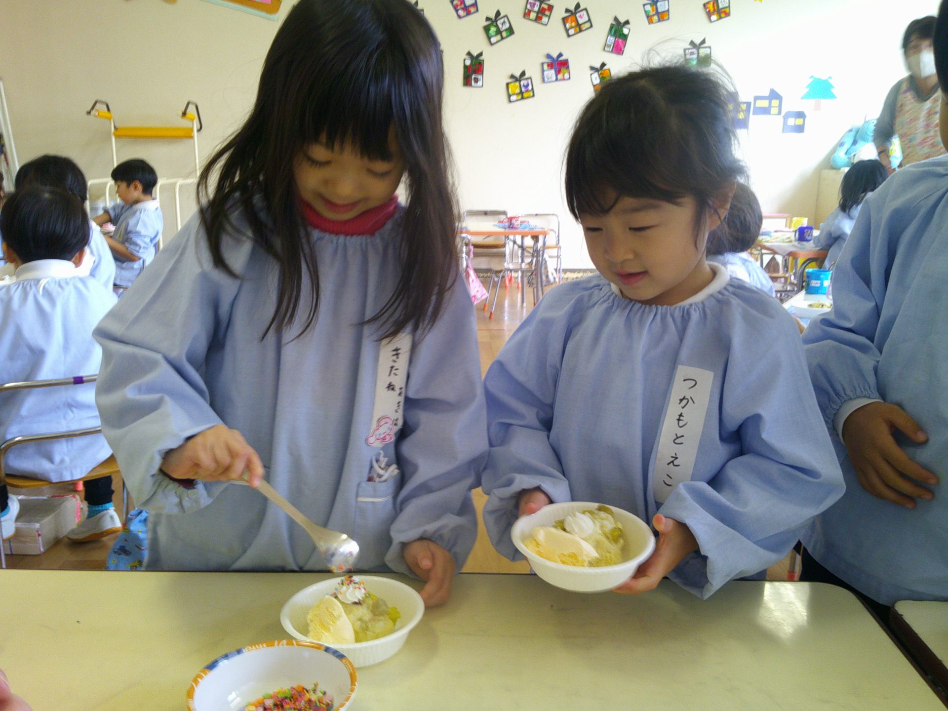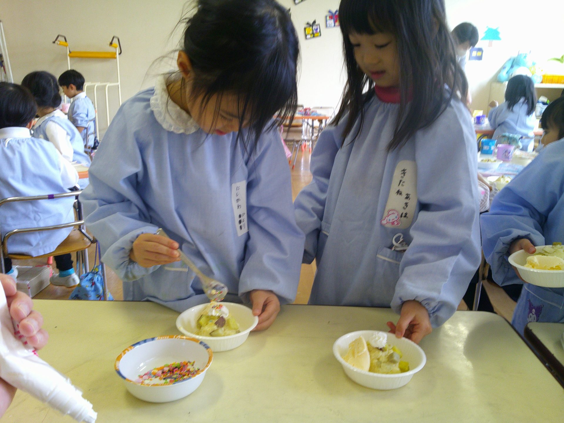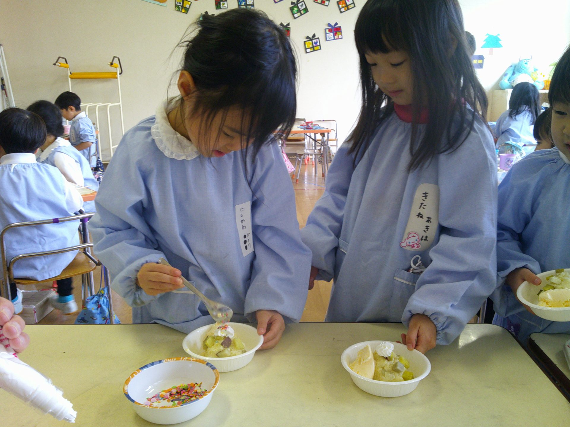音楽発表会もとってもよく頑張った子どもたち。トッピングではアイスや生クリームをのせて、楽しく作ることができました☺
