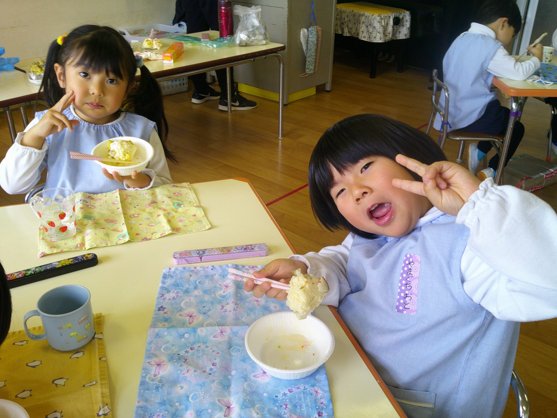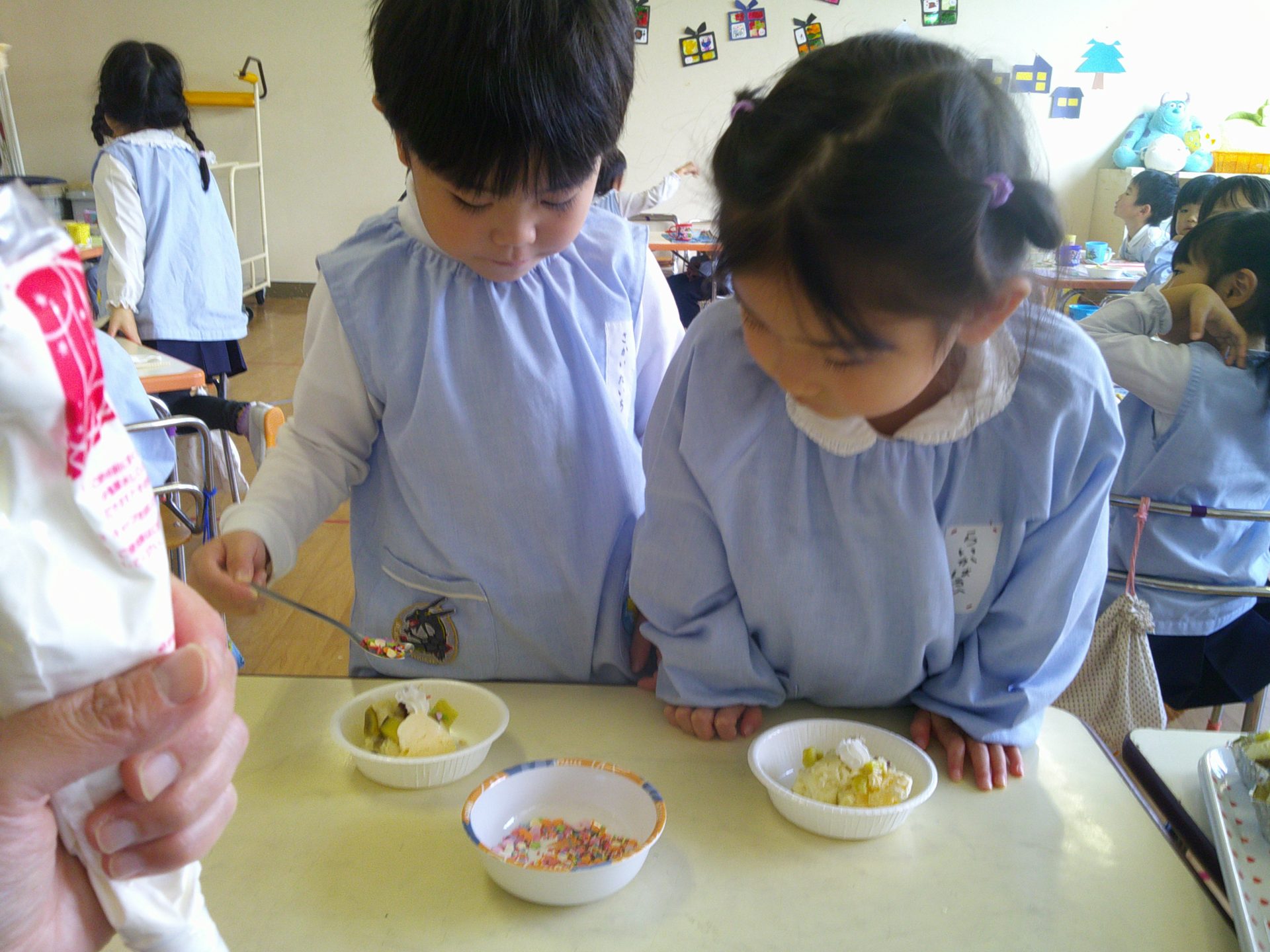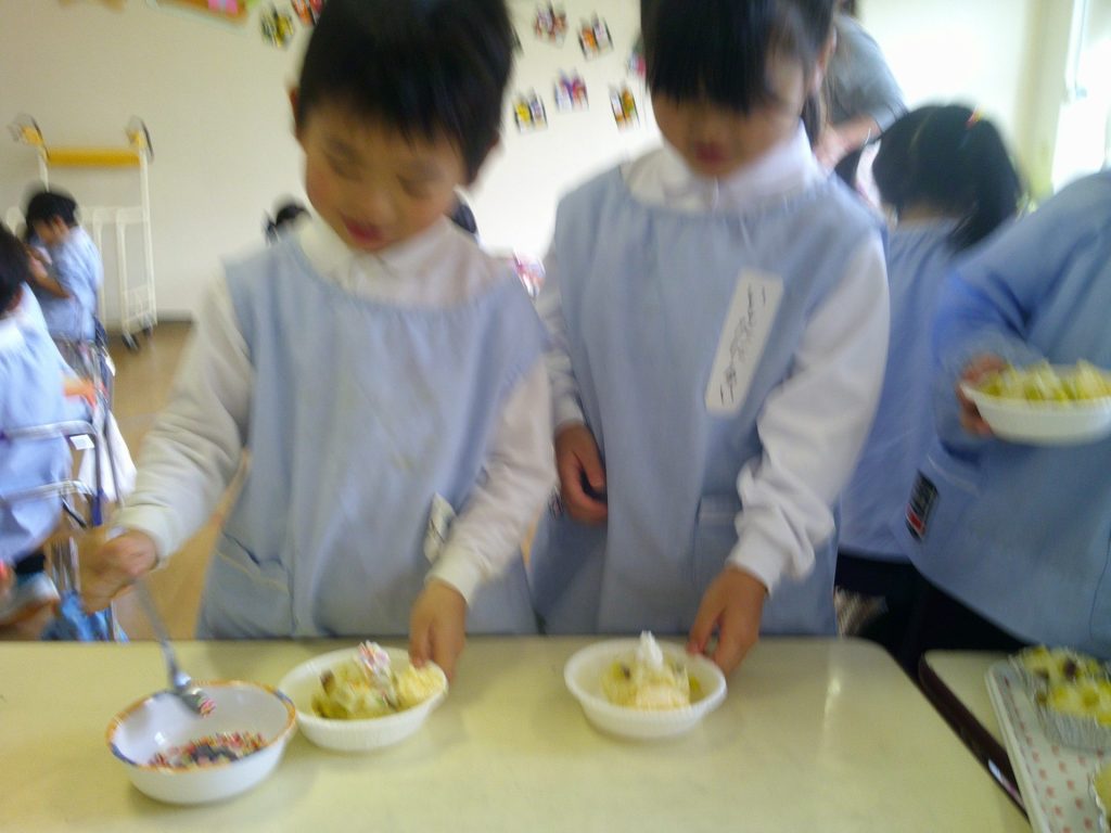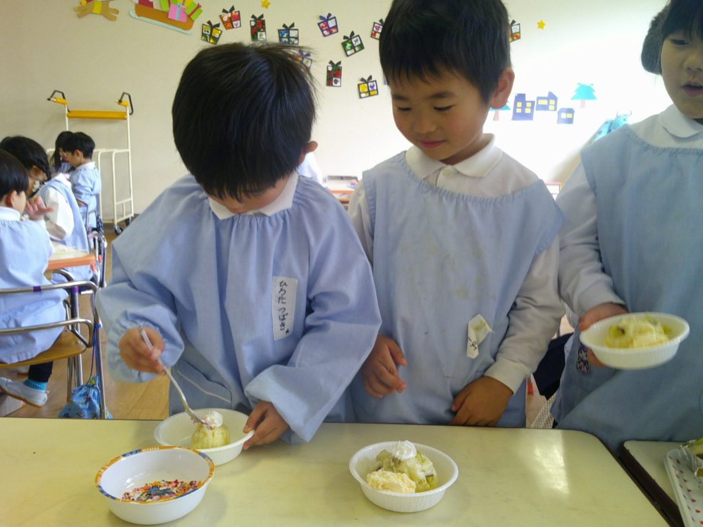 音楽発表会もとってもよく頑張った子どもたち。トッピングではアイスや生クリームをのせて、楽しく作ることができました☺