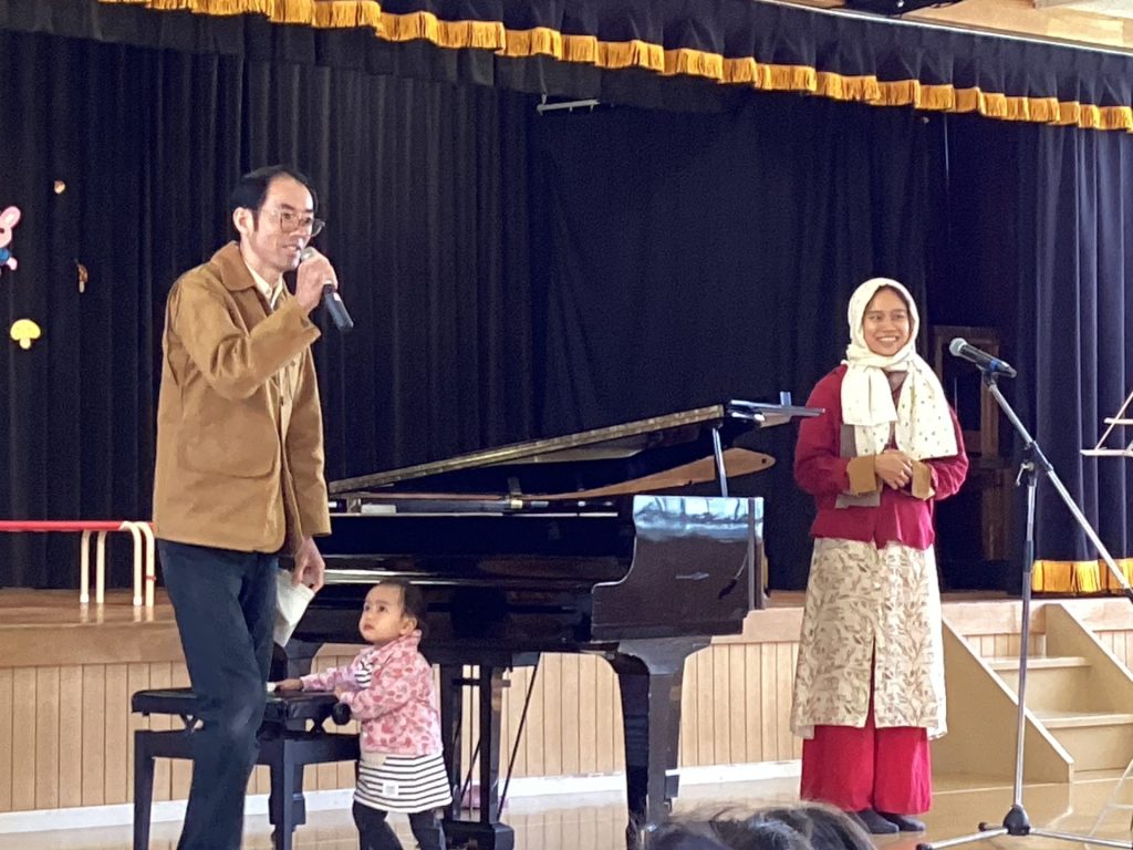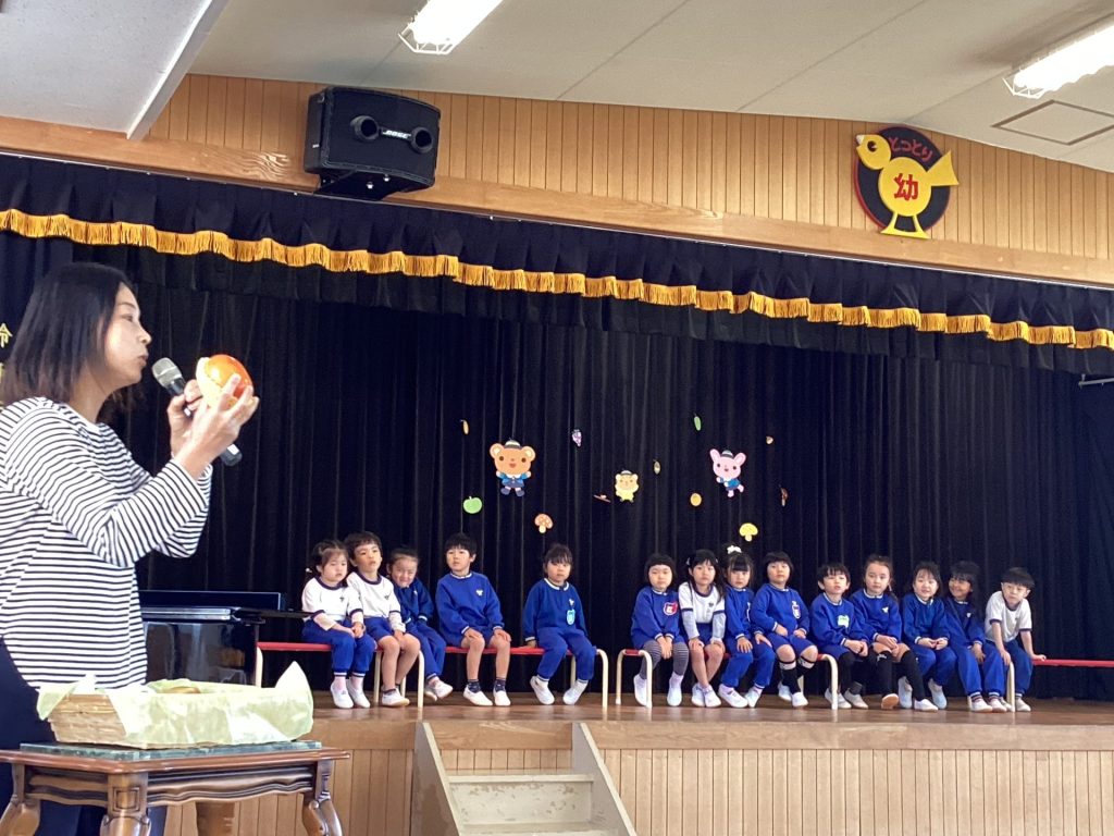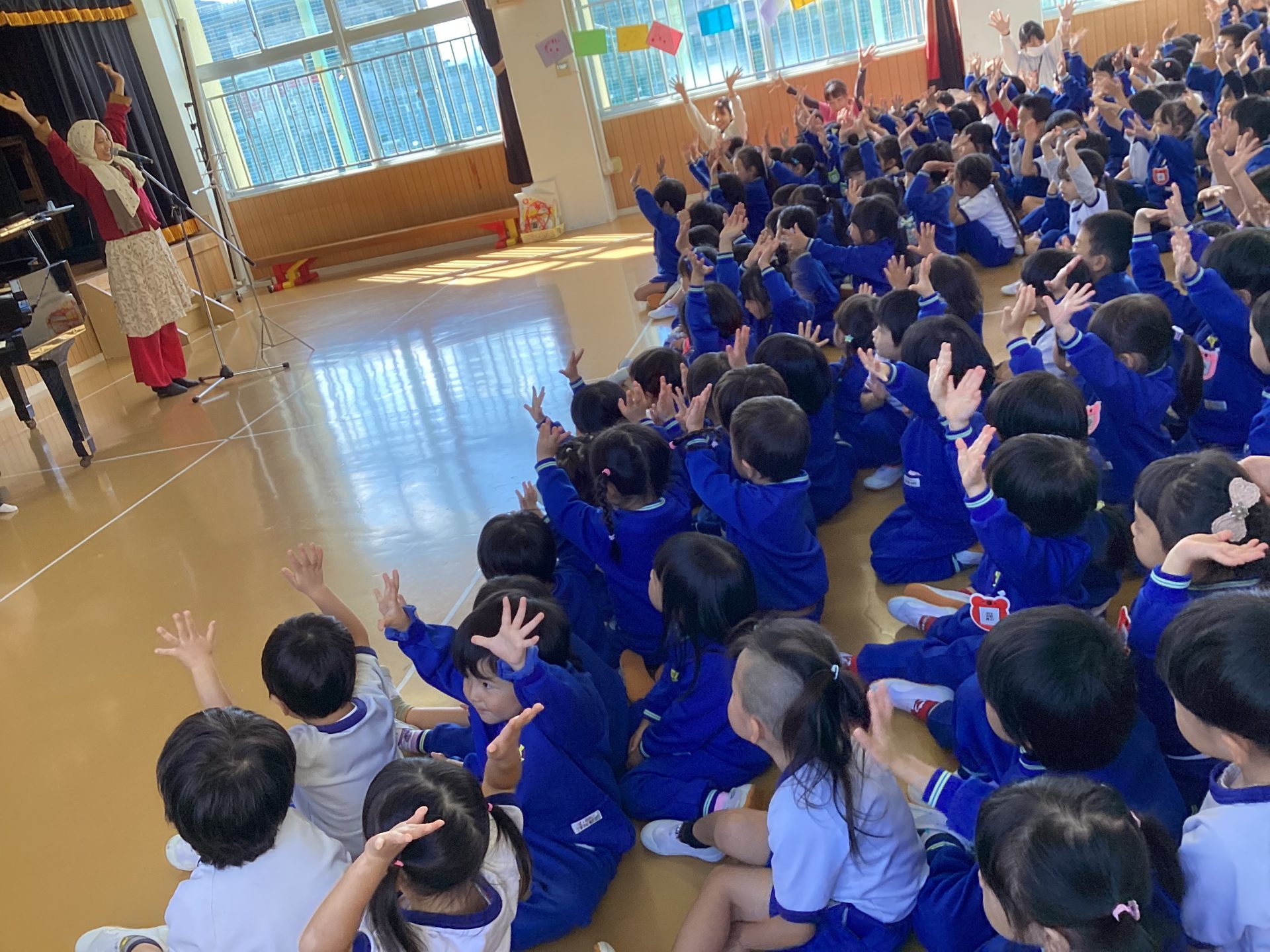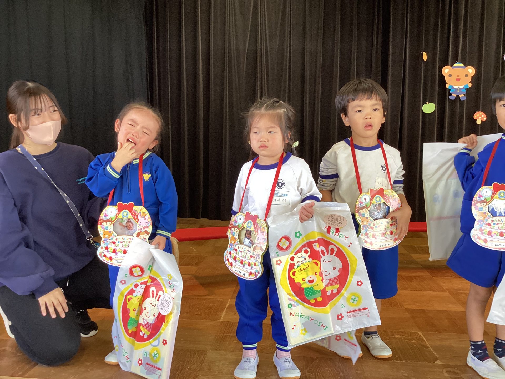 10月誕生会の様子です。みんなの前でステージに立ち、ドキドキしながらも自己紹介できました!!みんな素敵でした!!今月のお楽しみコーナーはゲストが2組来てくださいました!!かっこいいギターの音色とジャズピアノに合わせて歌やダンスを見せてくださいました!!とっても楽しい時間となりました!!